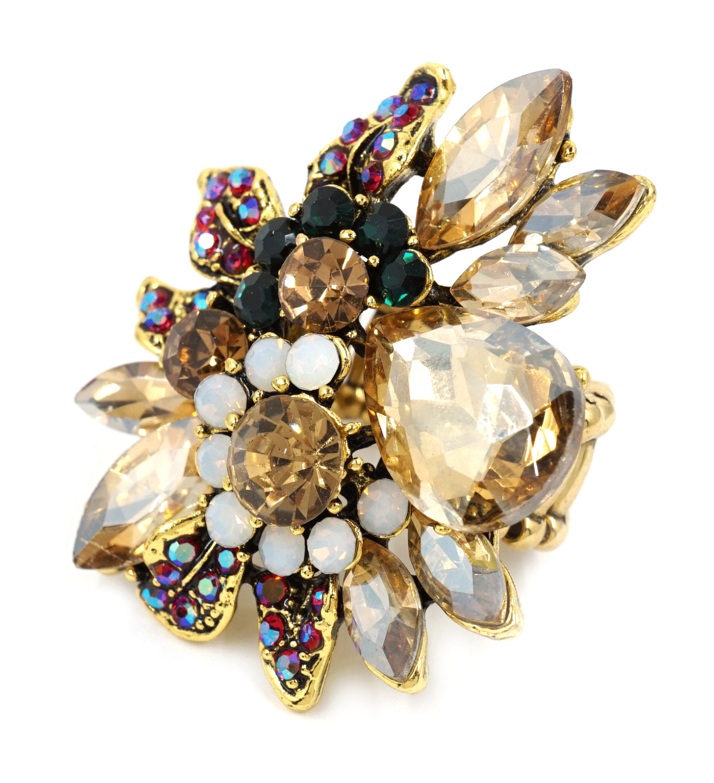 TB Flower Leaf Teardrop Style Rhinestone Sparkle Stretch Adjustable Fashion Ring