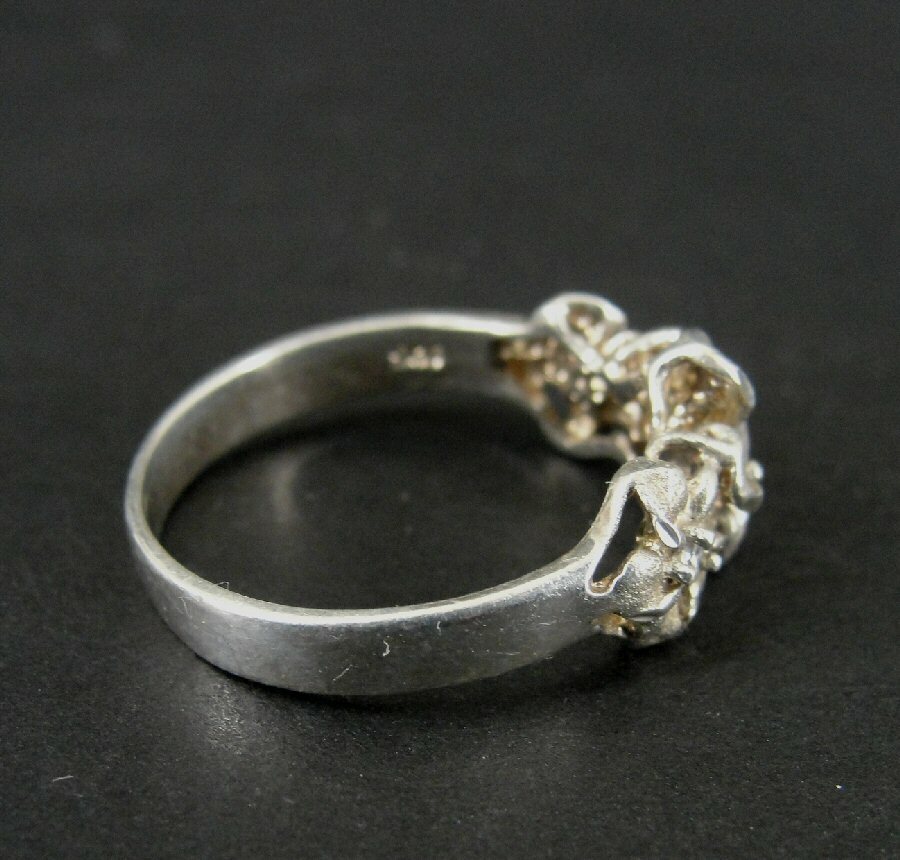Ring Silver Plumeria 3 Flowers Cubic Zirconia Stones Sterling 925 Size 7 Band