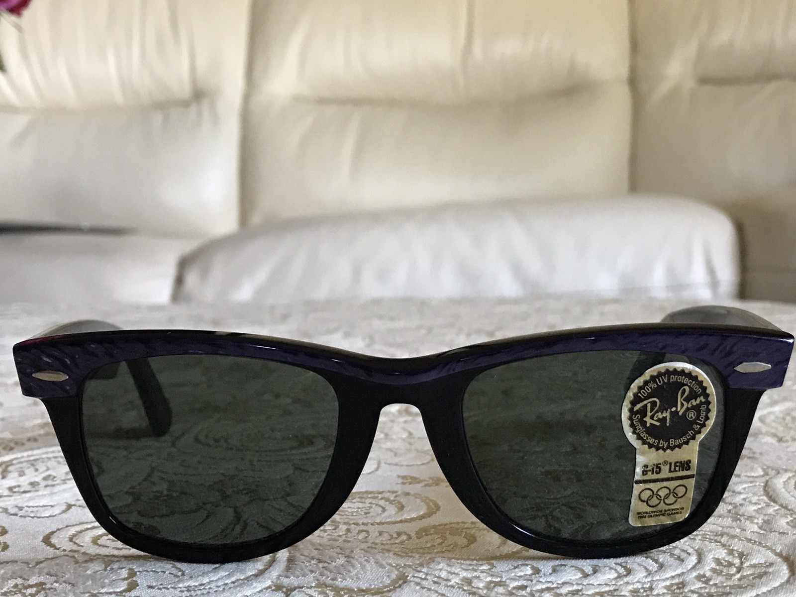 как выглядит Authentic Vintage B L Ray Ban Wayfarer Street Neat Ebony/Purple/Bue G15.....NOS фото