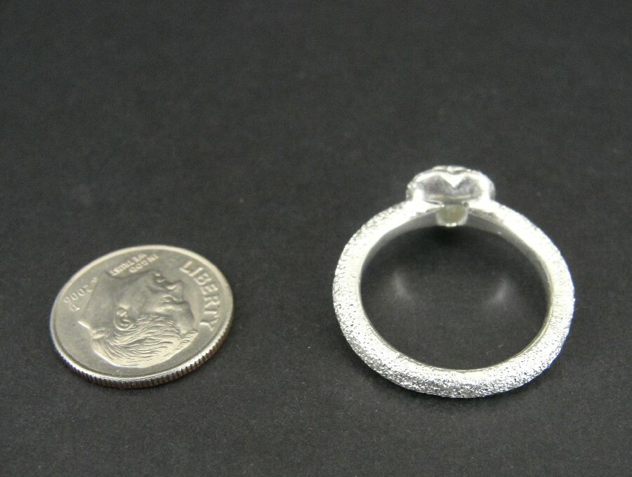 Ring Silver Heart Blue Stone Texture Band Sterling 925 Size 7.25 Band Ring