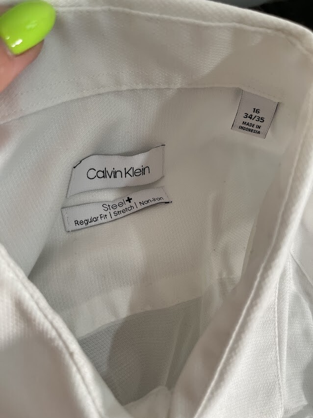 как выглядит Calvin Klein Mens Regular Fit Button Front White Shirt Long Sleeve Size 16 фото