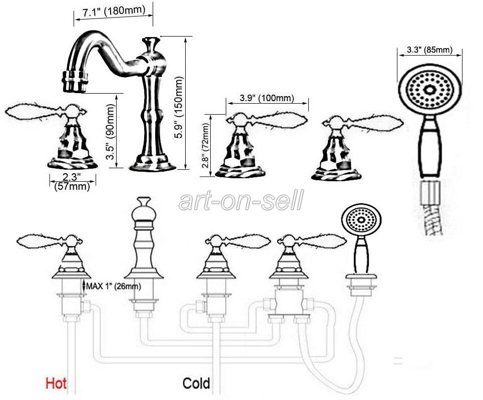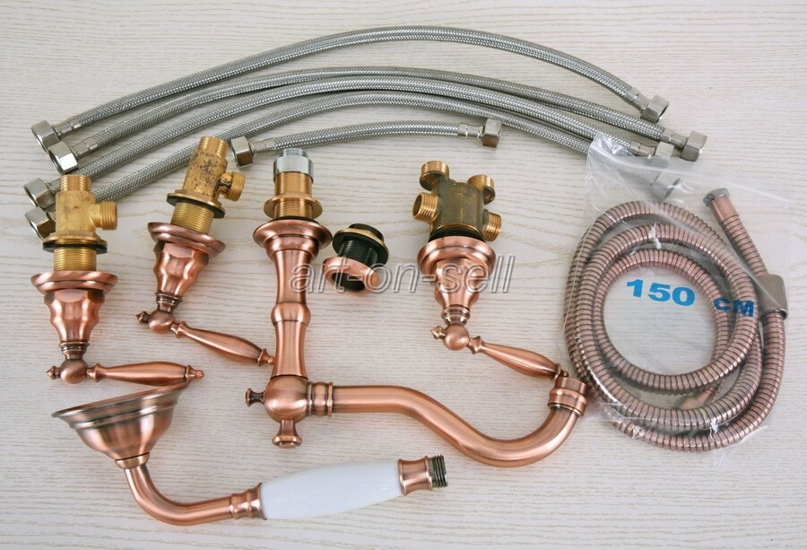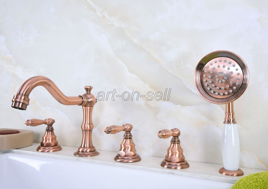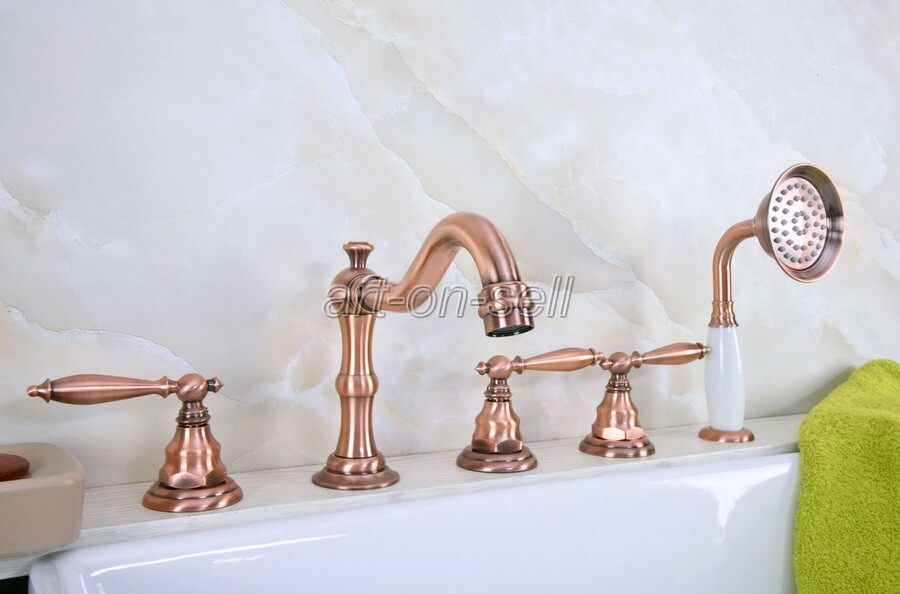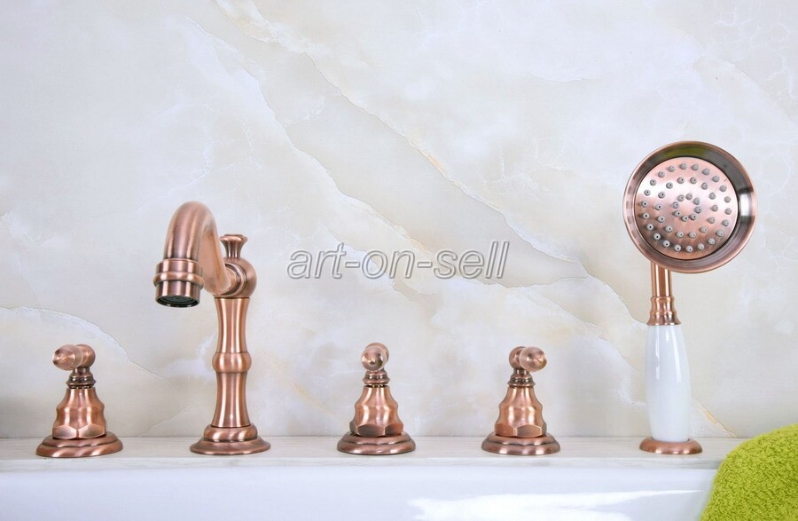 как выглядит Antique Red Copper Bathroom Roman Tub Faucet Mixer Tap 5 PCS Set Hand Shower фото