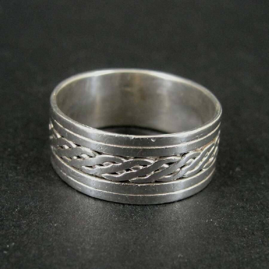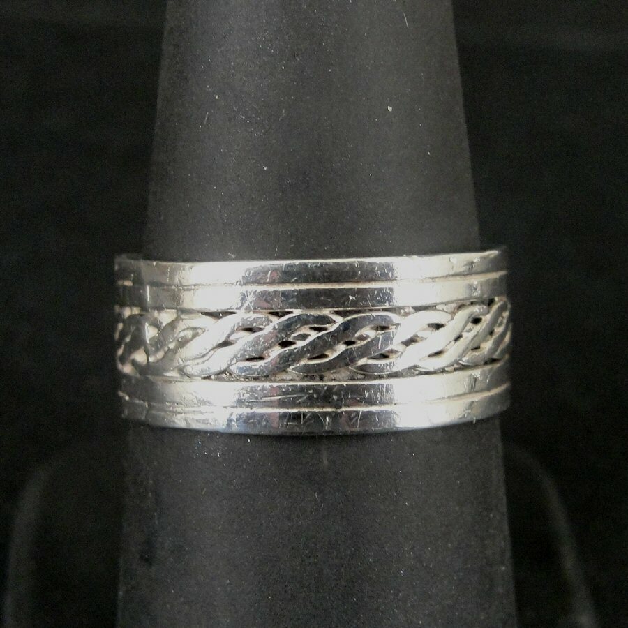 Ring Silver Twist Braid with Lines Band Sterling 925 Size 7.5 Ring Band 7 1/2