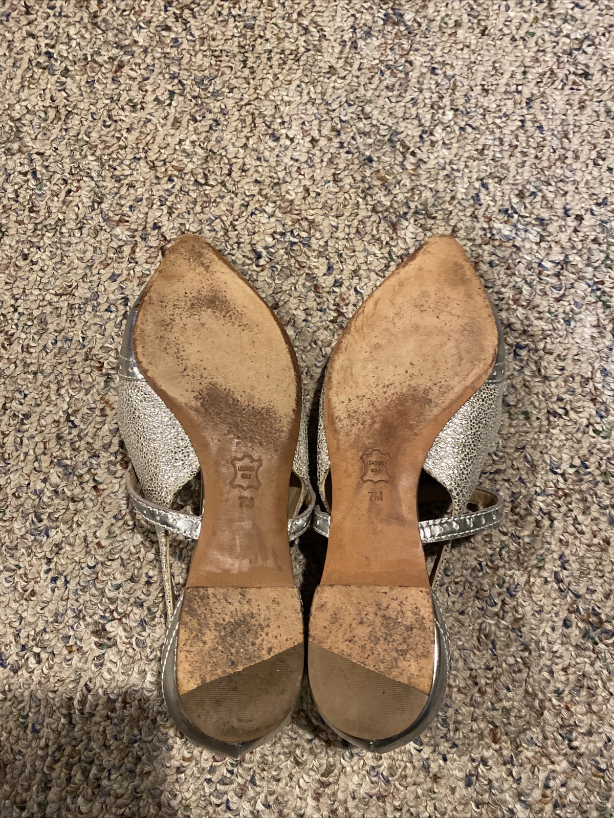 как выглядит Tory Burch 187206 Womens Leather Silver Metallic Sadie Mules/Slides Size 7M фото