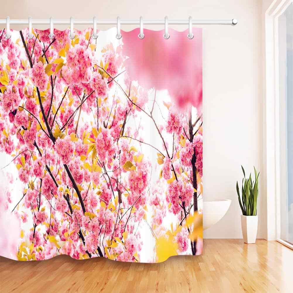 Sakura Pink Waterproof Bathroom Polyester Shower Curtain Liner Water Resistant