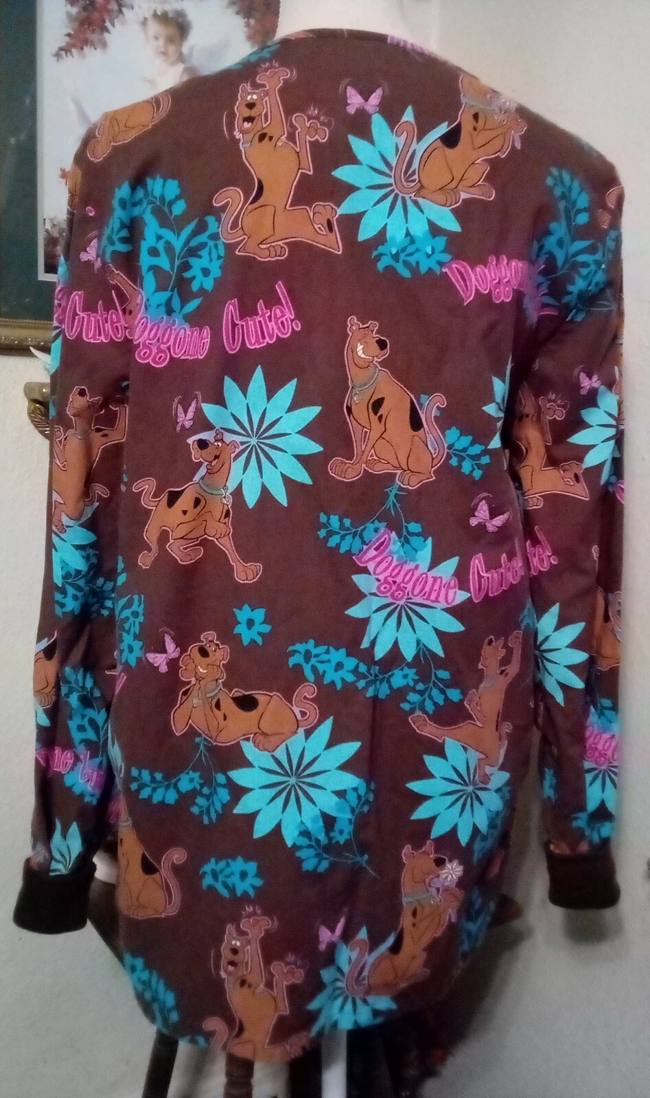 Scooby Doo Small Scrub Top Brown Blue Pink Long Sleeves Snap Front Pockets