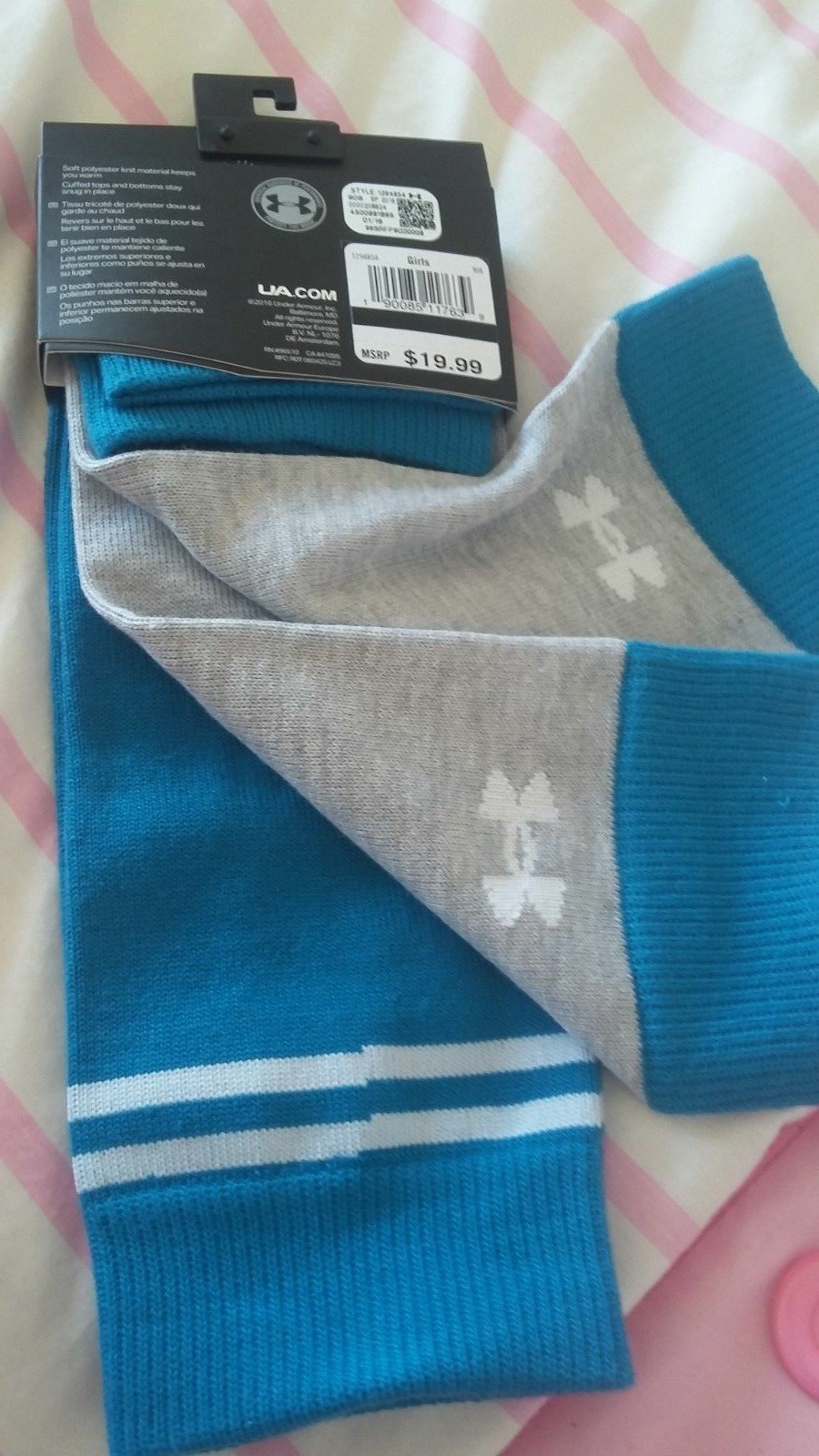 как выглядит NWT Girls Under Armour leg warmers purple or blue фото