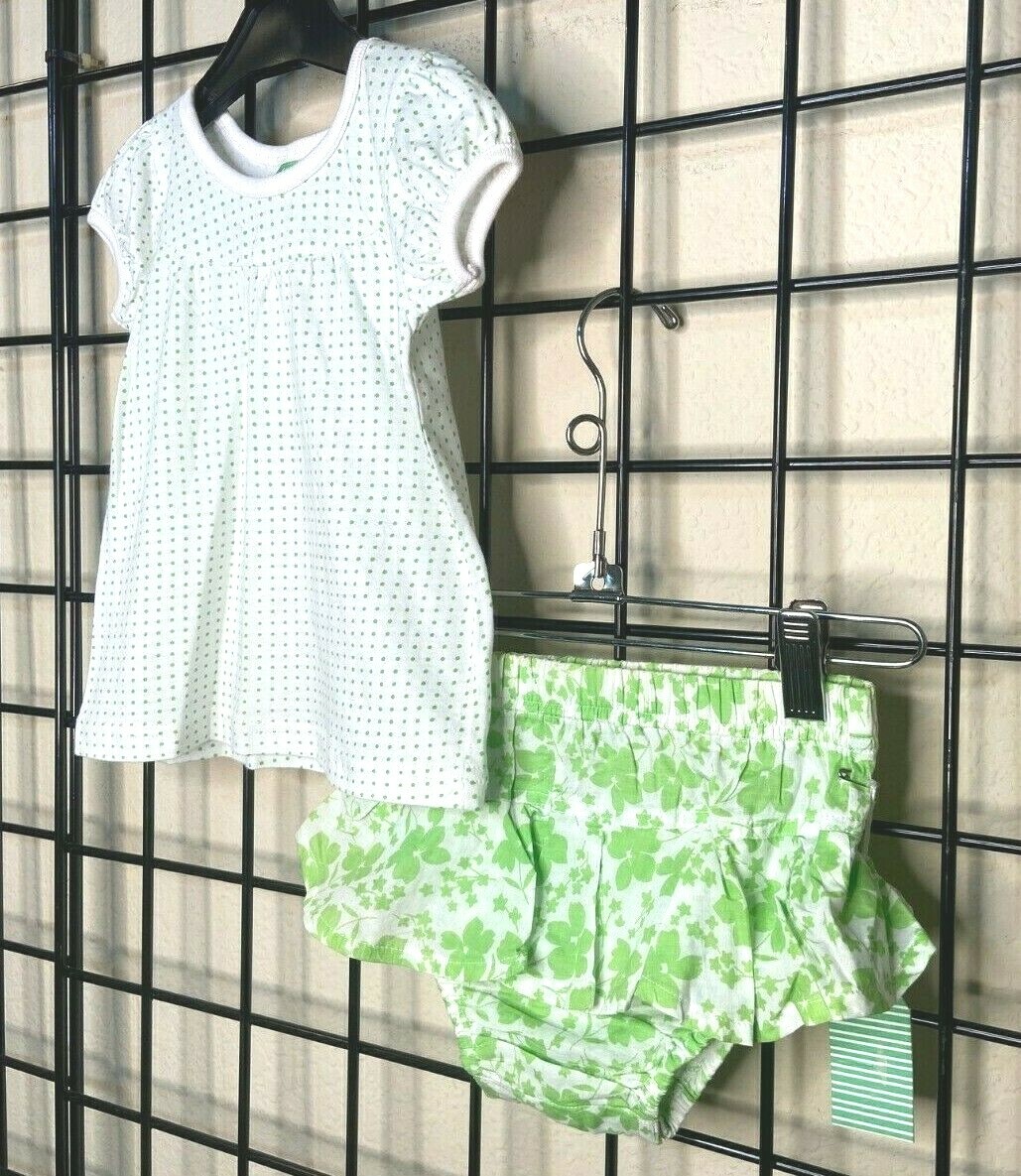NEW NWT 2PC Green/White Dot Top Green/White Floral Bloomer/Diaper Cover 12/18M