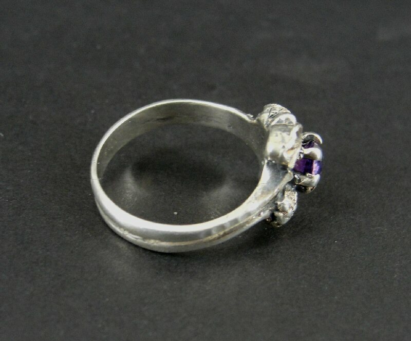 Ring Silver Purple Stone with Leaf Design Sterling 925 Band Size 6.75 Ring