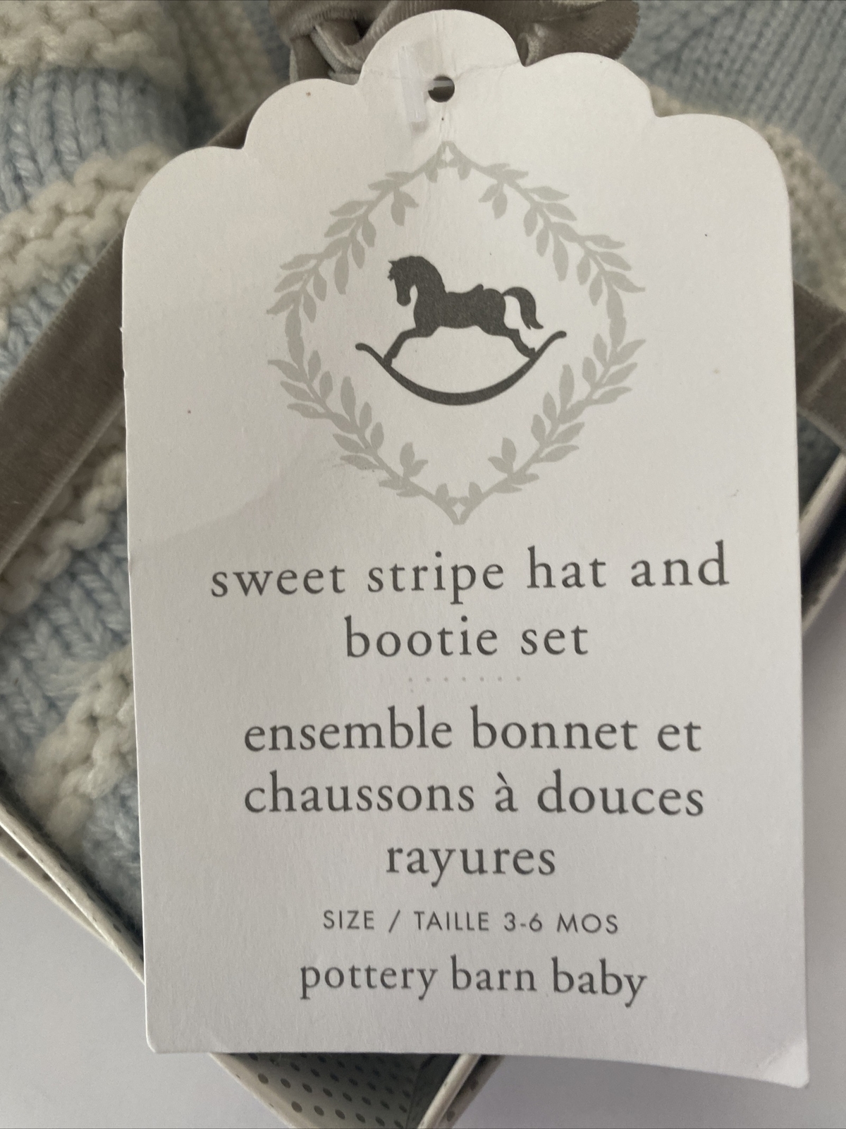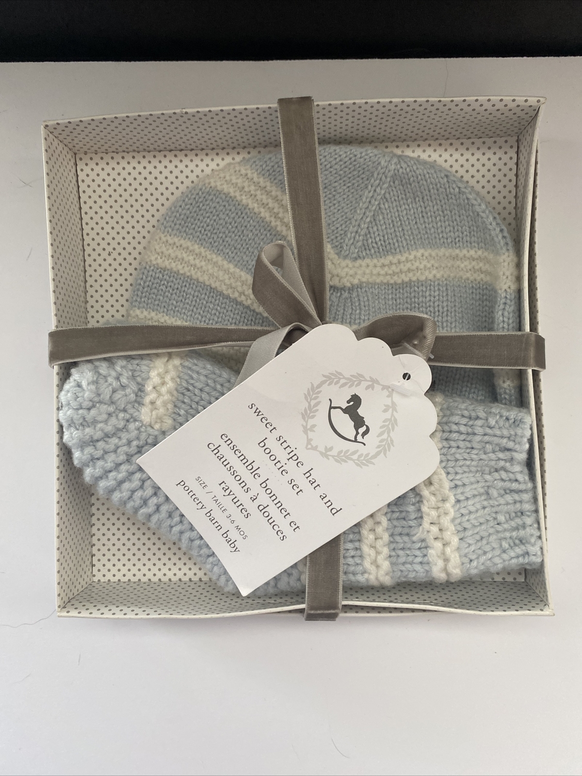 Pottery Barn Baby Sweet Stripe Hat Bootie Set Blue White Knit 3-6 Months NIP