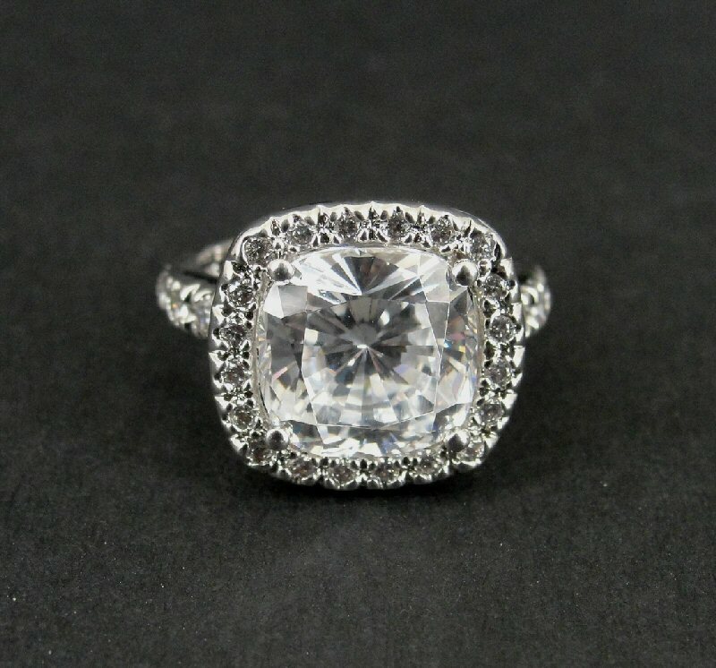 Ring Silver Cushion Cut Stone Cubic Zirconia Sterling 925 Size 6 Ring Band