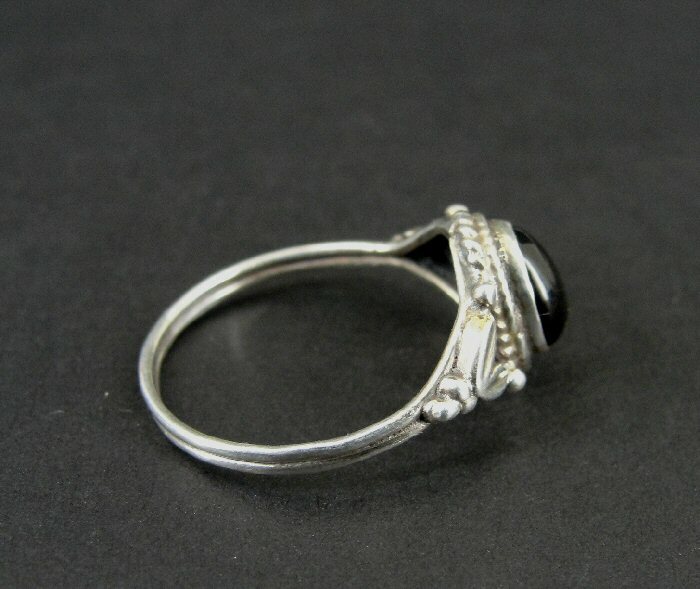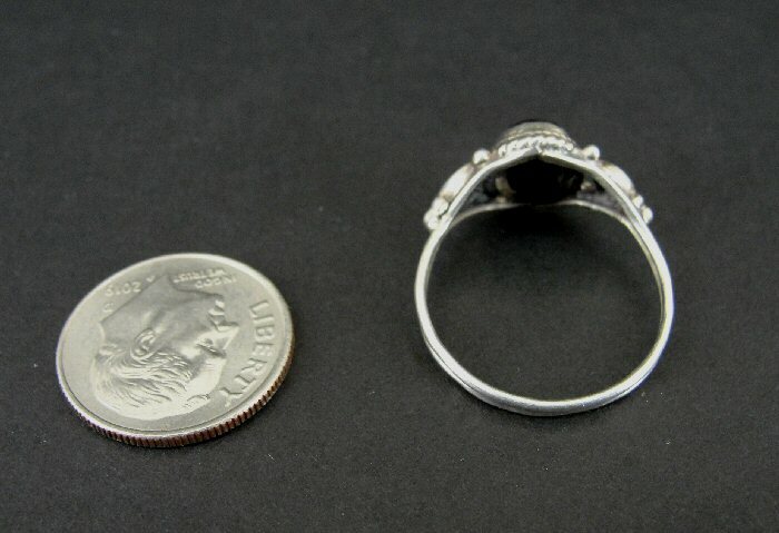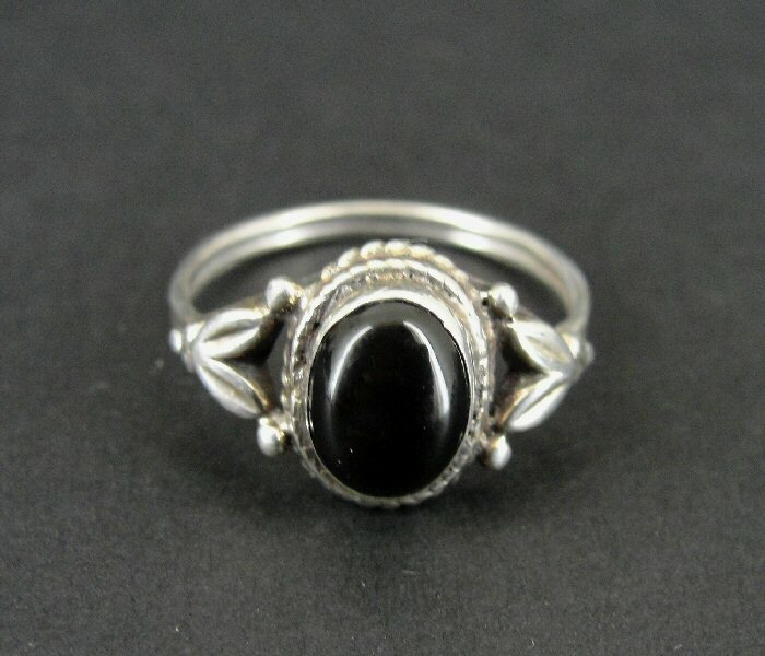 Ring Silver Black Onyx Stone Oval Side Leaves Sterling 925 Size 7.5 Band