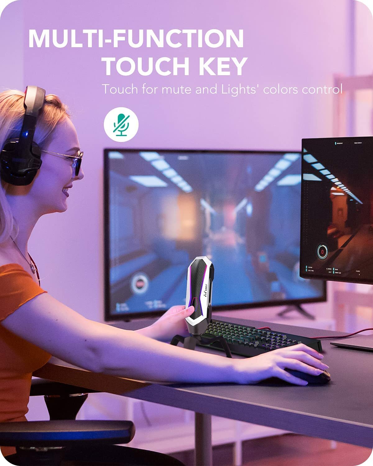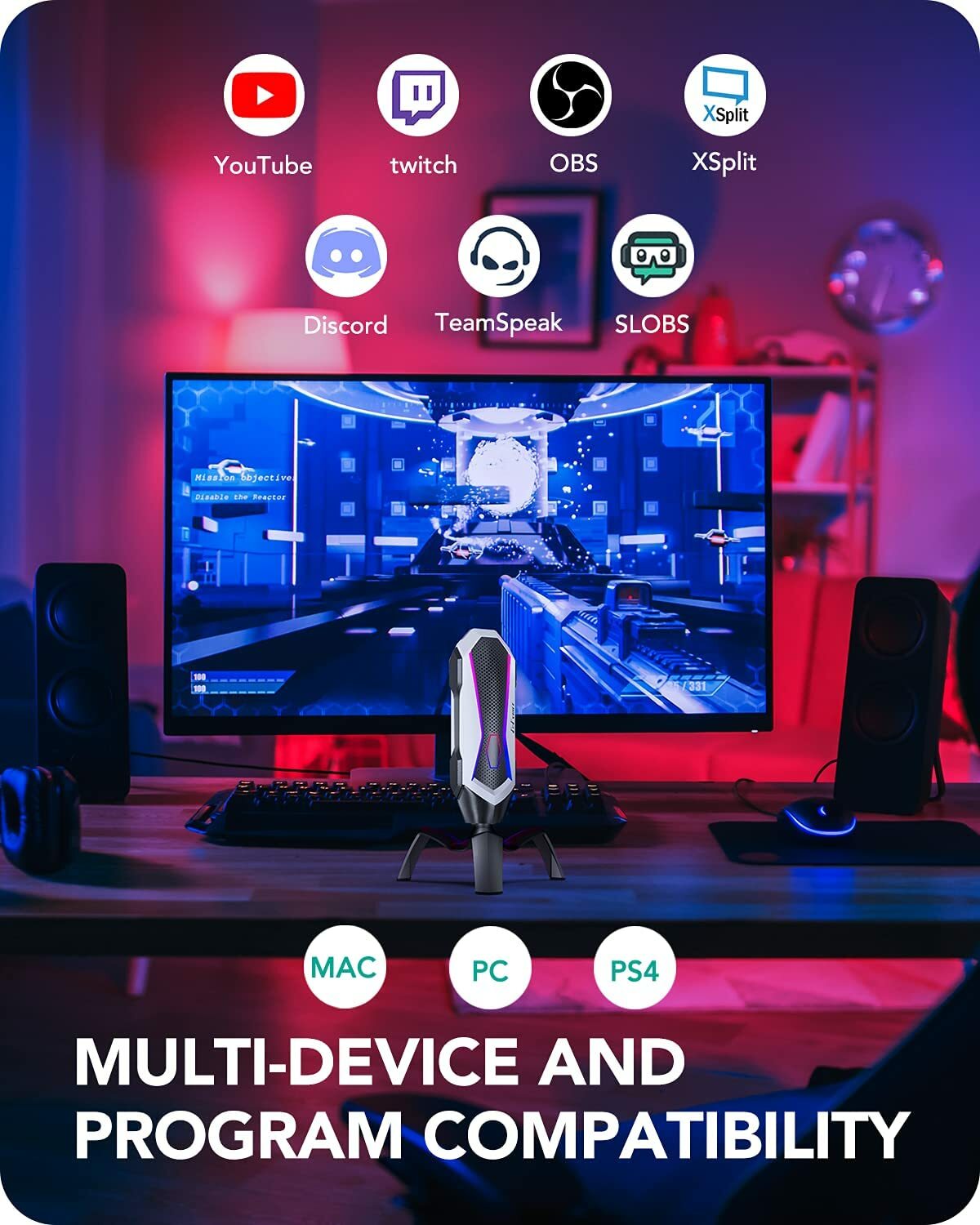 PoP Voice Condenser USB Microphone with RGB Lights with Tripod, PC, Mac, Twitch,