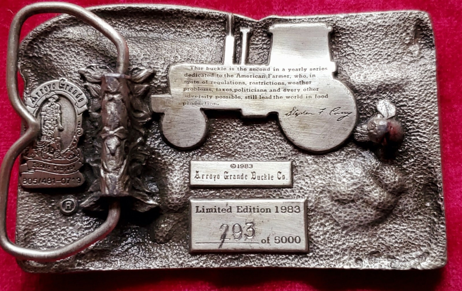 Vintage 1983 Commemorative AMERICAN AGRICULTURE Pewter Belt Buckle, 293/5000