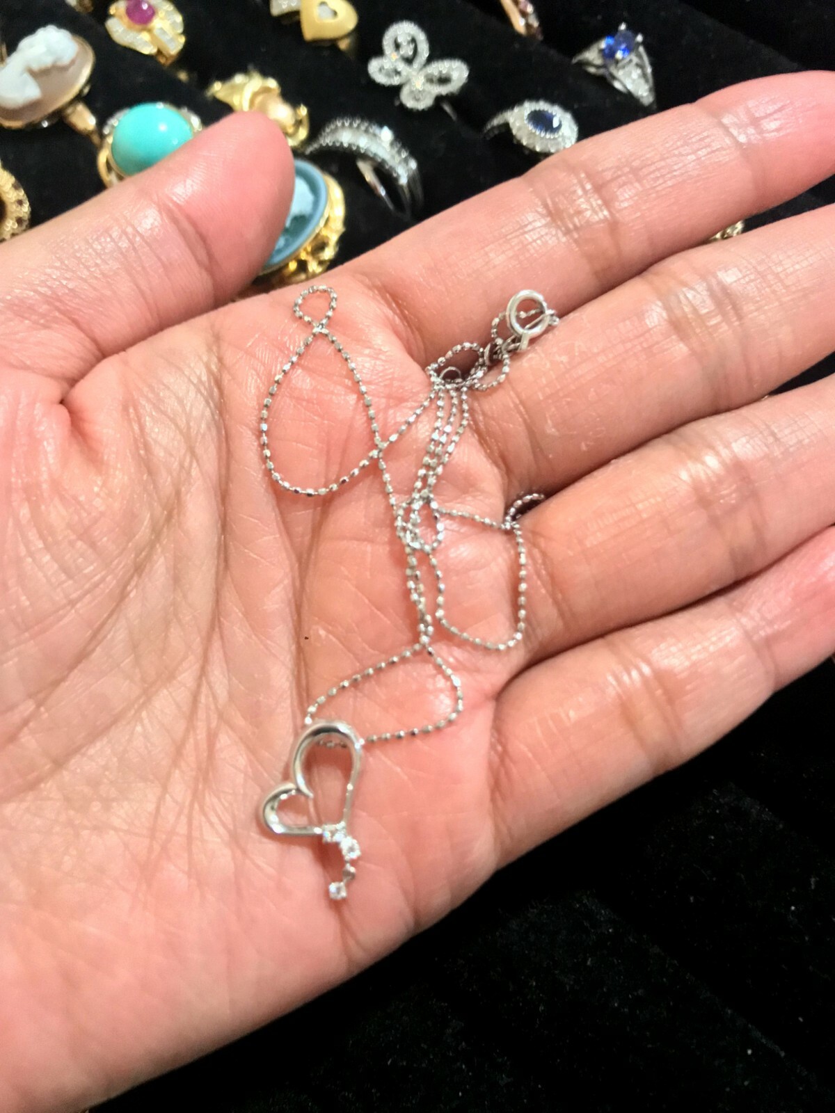 как выглядит Ladies 10K Solid White Gold Real Diamond Heart Pendant Necklace 1.4 grams 16 in фото
