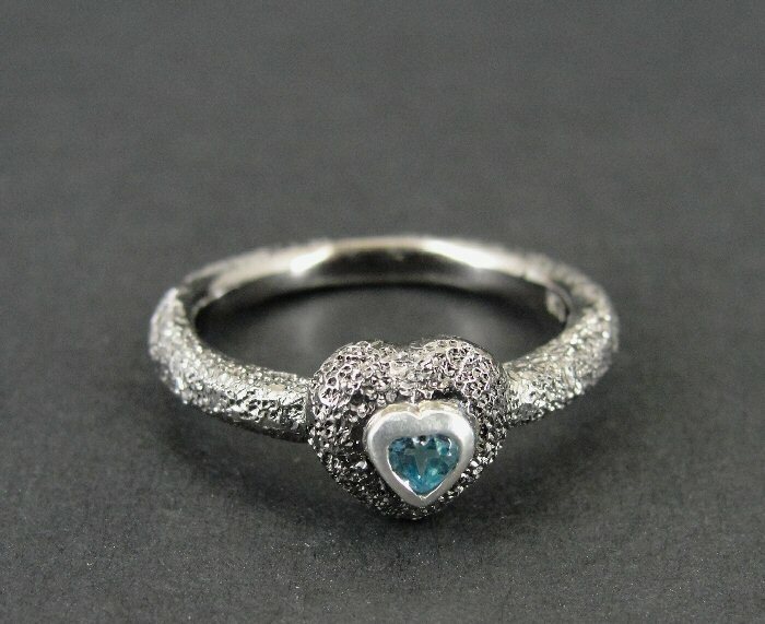 Ring Silver Blue Heart Stone Darkened Textured Sterling 925 Size 9 Band Ring