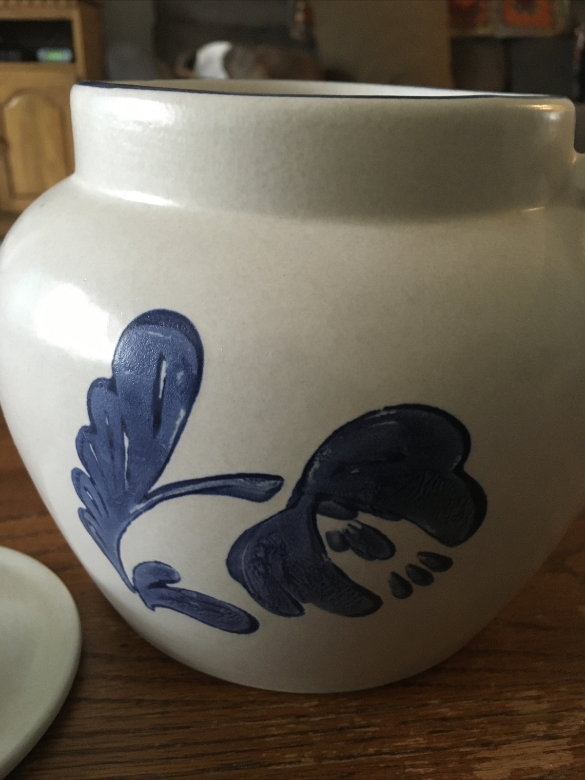 как выглядит Pfaltzgraff YORKTOWNE Vintage 1970s Grey/Blue 1 Handle Bean Pot w/lid Never Used фото