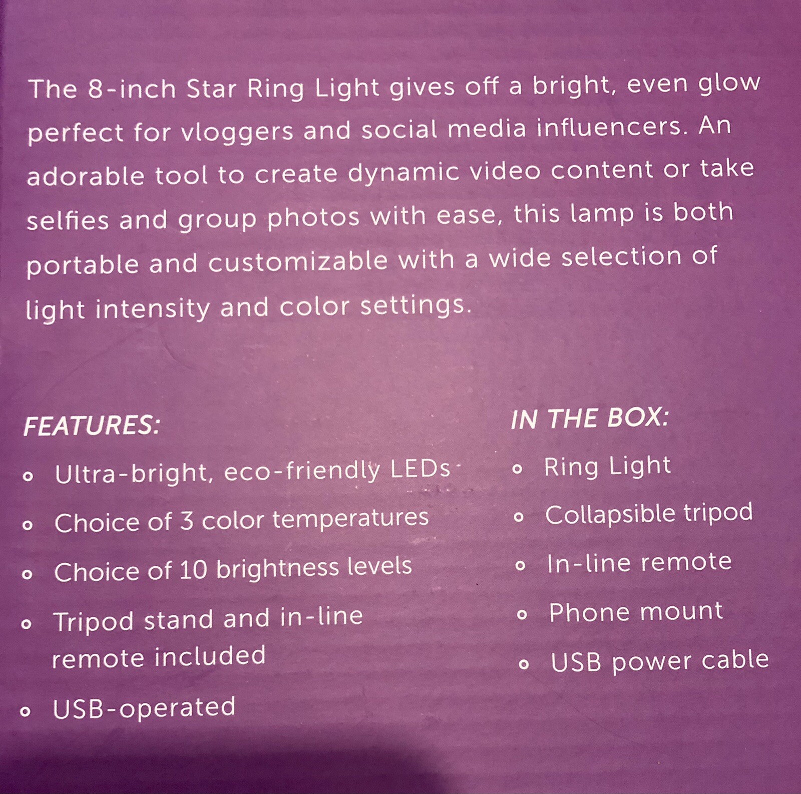 Brilliant Ideas Star Shaped Ring Light 8 Inch Diameter NEW