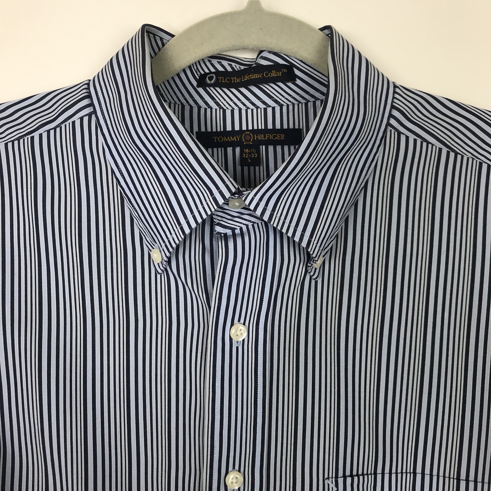 Tommy Hilfiger Mens Button Down Dress Shirt Lifetime Collar Blue Striped F03