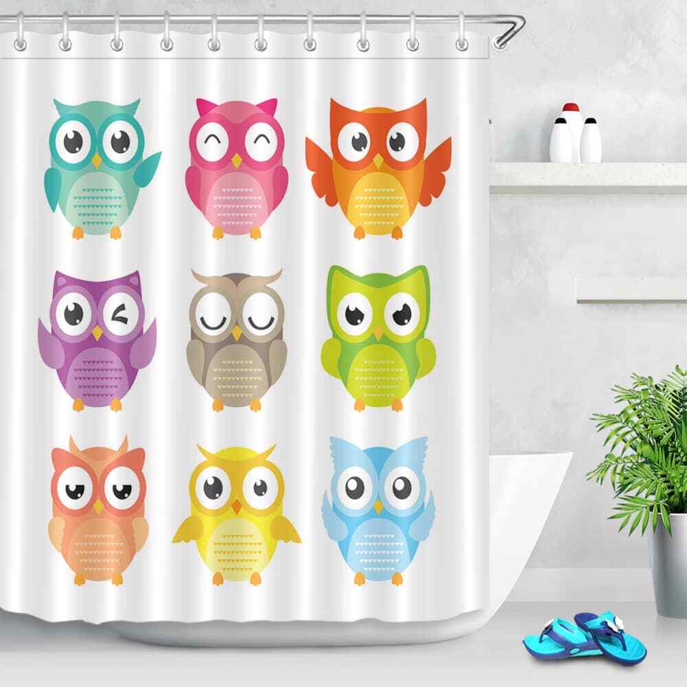 как выглядит Multicolored Owl Waterproof Bath Polyester Shower Curtain Liner Water Resistant фото