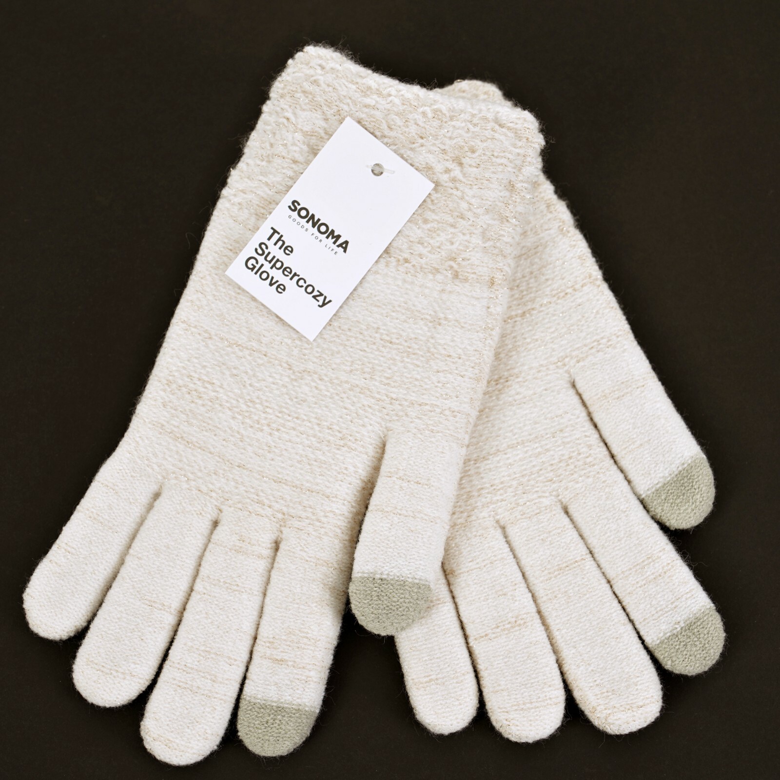 SONOMA Women's WHITE with GOLD METALLIC Sparkle WINTER GLOVES Touch Screen LINED