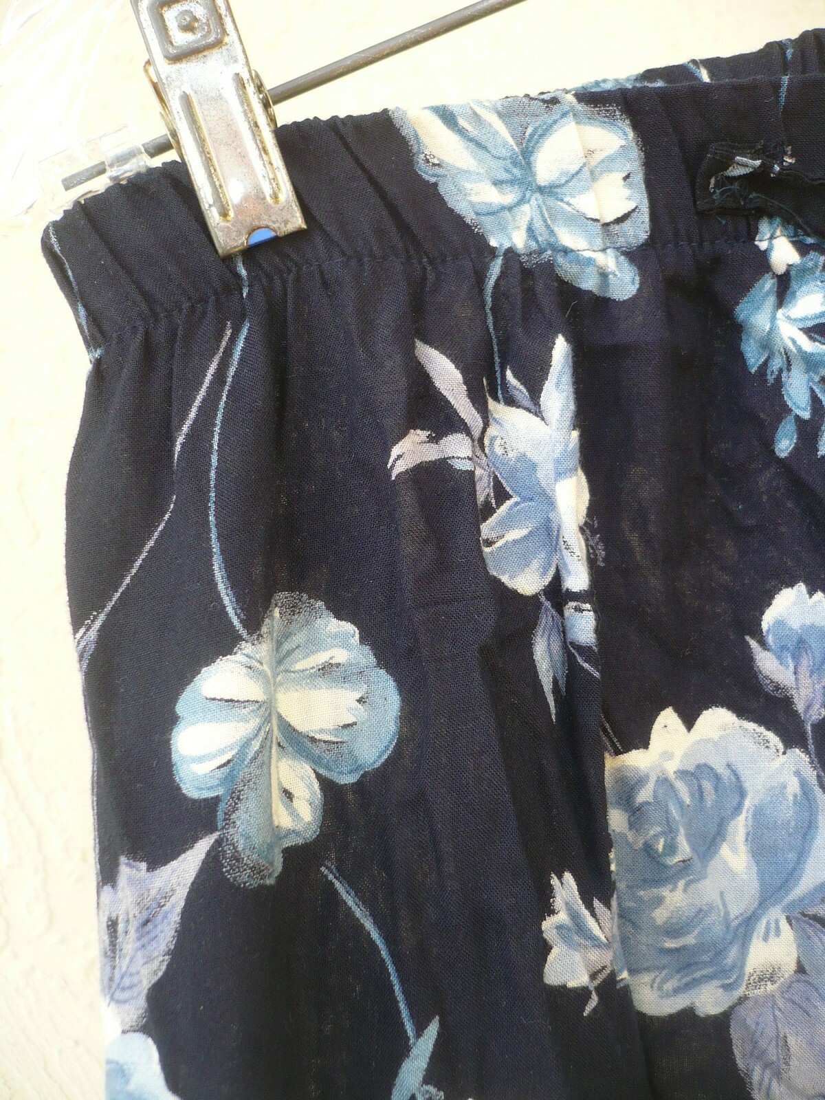 как выглядит VINTAGE BLUE 90S M XL L USA MADE CHAMBRAY FLOWERS FLORAL RAYON LONG PANTS LADY фото
