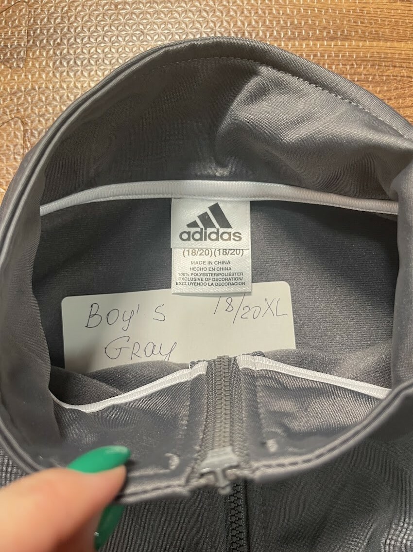 как выглядит Adidas Boys Gray Track Jacket Full Zip Size XL 18/20 фото