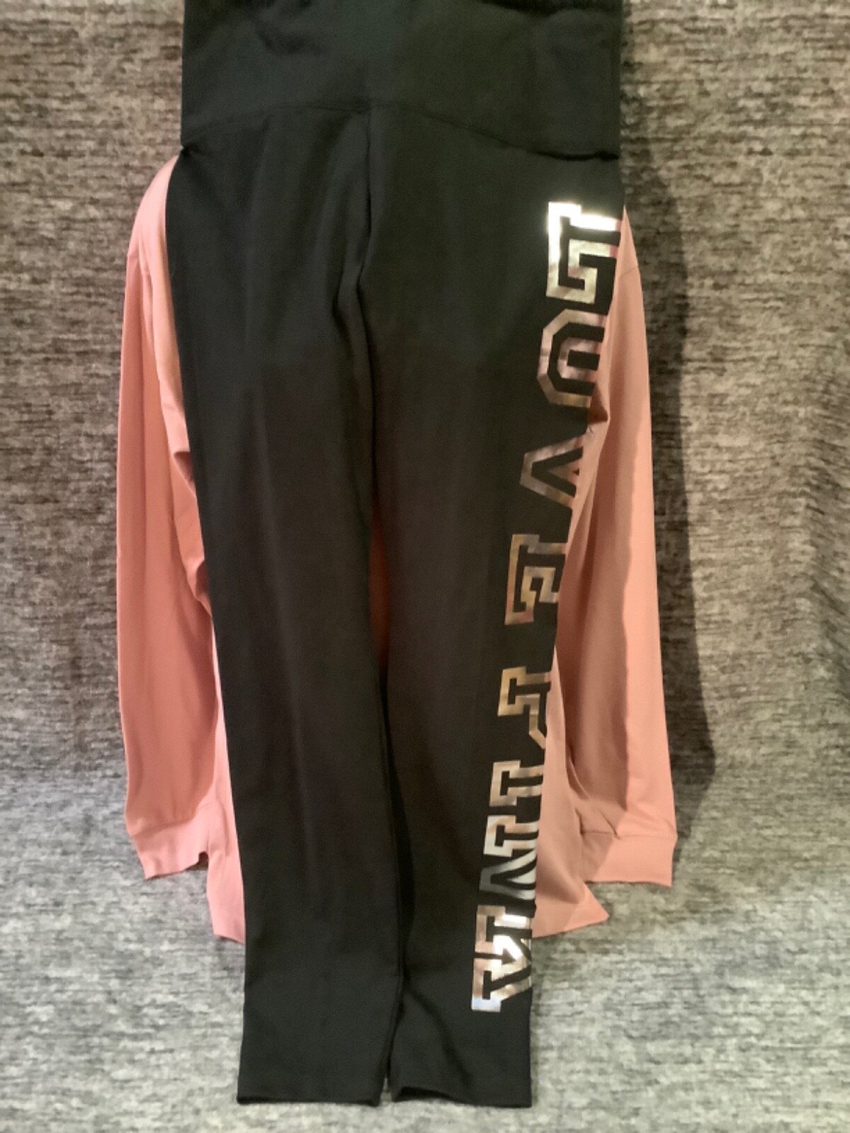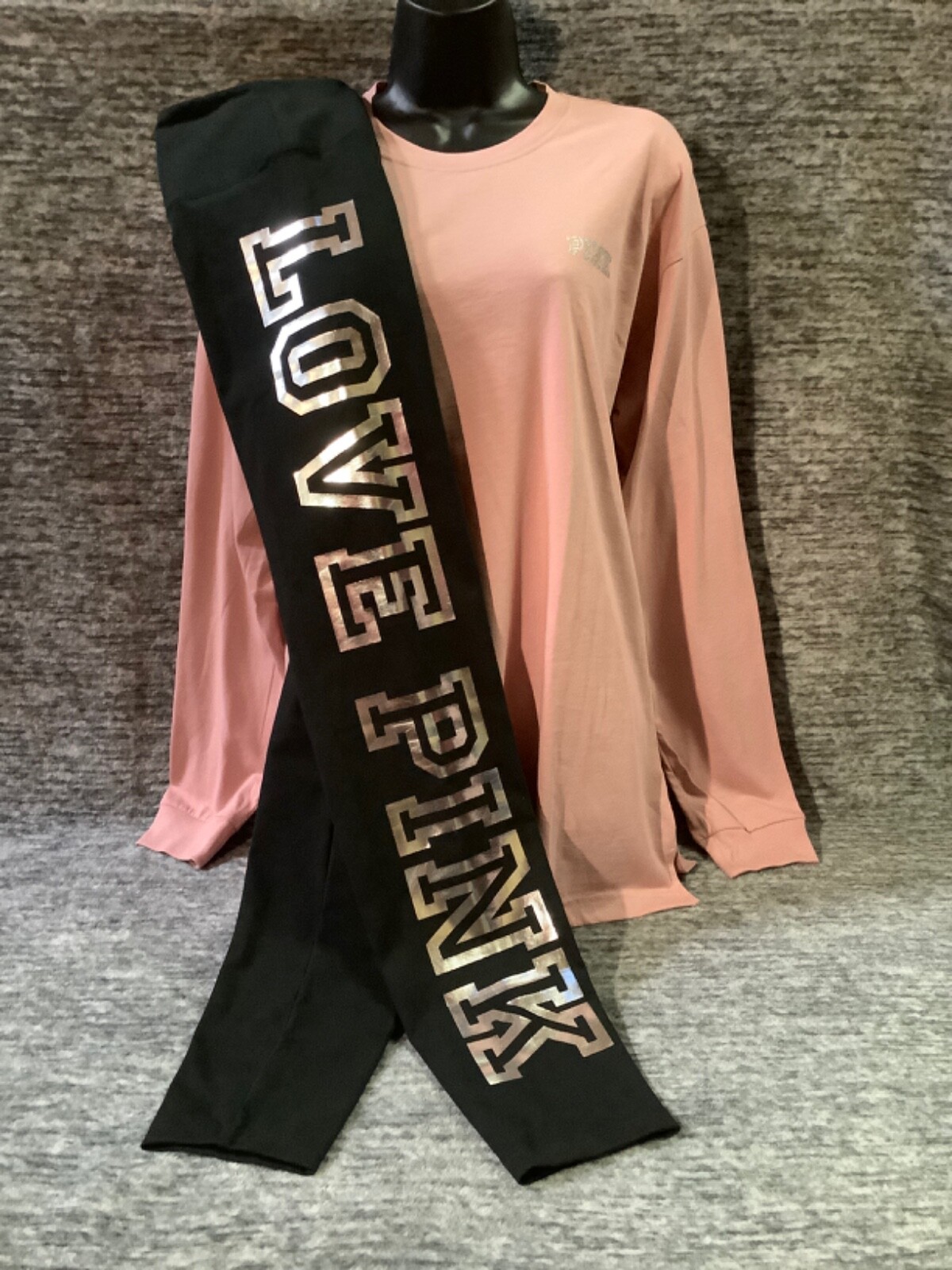 как выглядит Victorias Secret Pink Bling Campus Tee Shirt Leggings Set Damsel Pink L XL фото