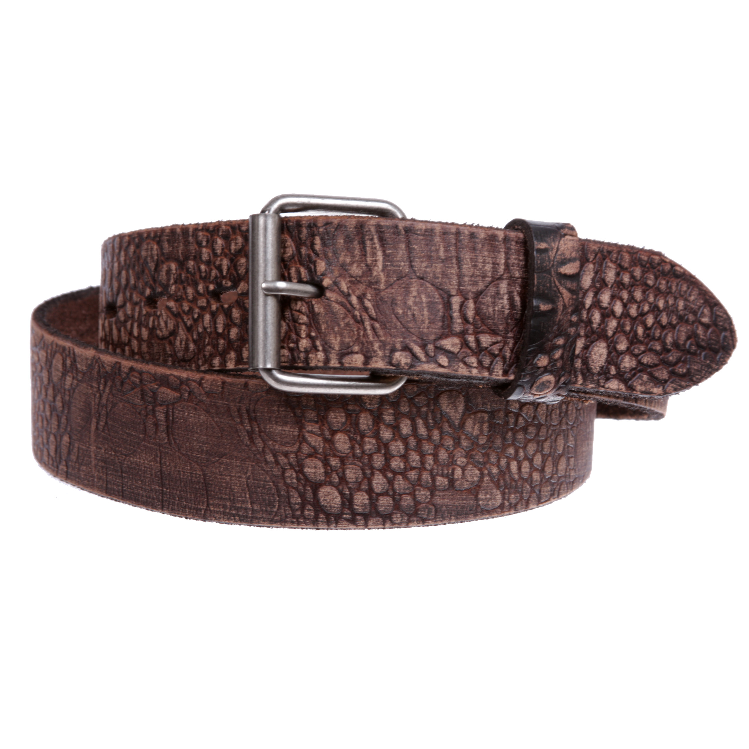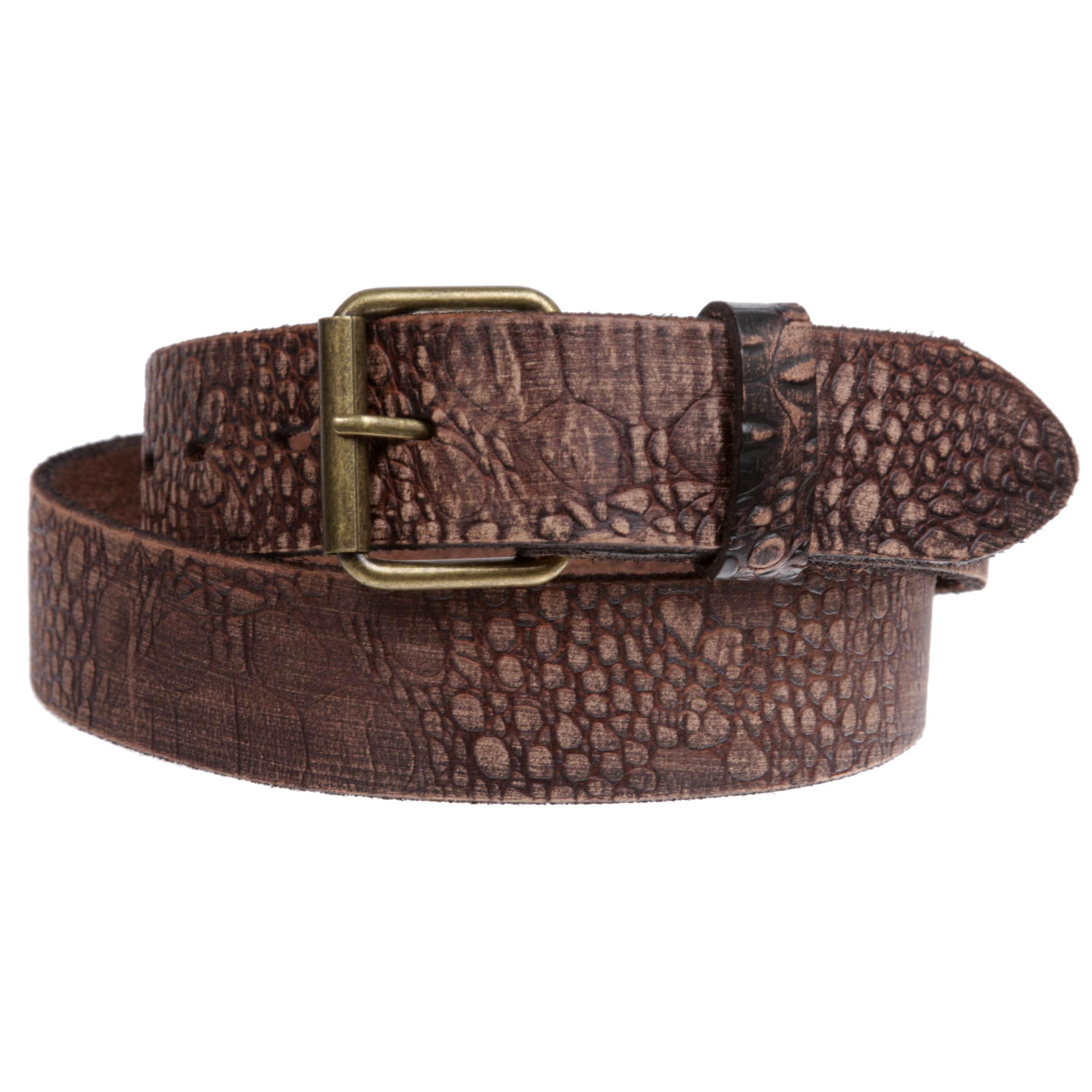 Croco Embossed Distressed 100 Leather Casual Belt for Men and Women