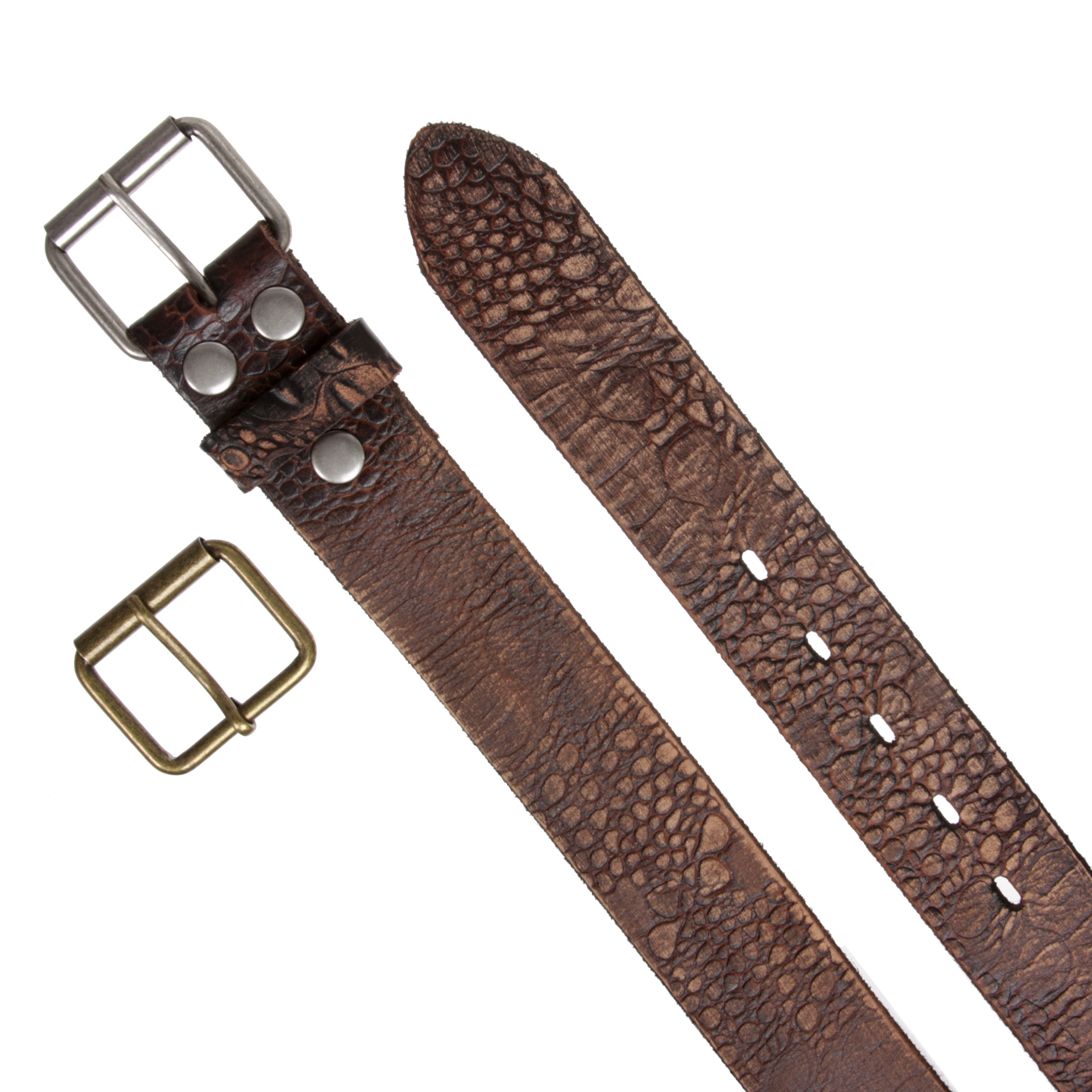 как выглядит Croco Embossed Distressed 100 Leather Casual Belt for Men and Women фото