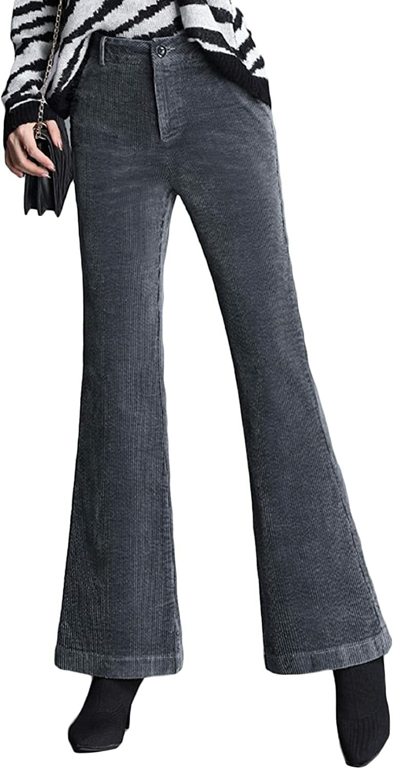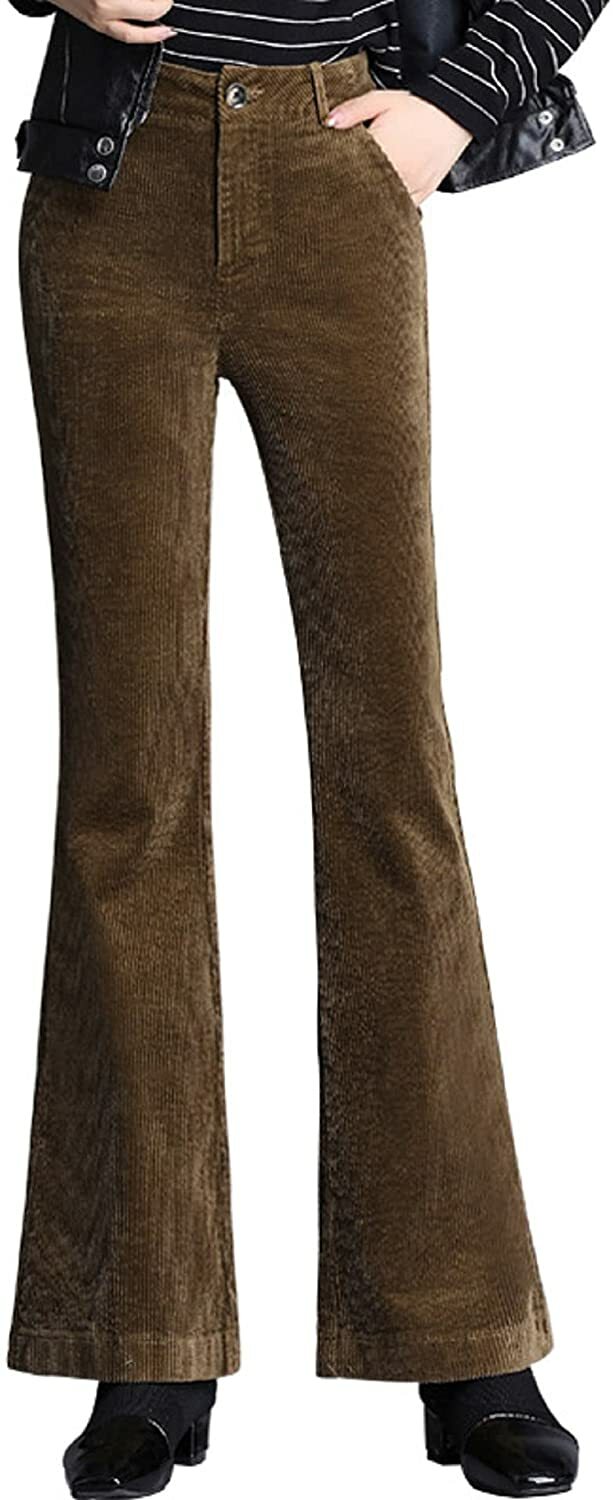Women's Vintage Corduroy High Rise Flared Bell Bottom Slim Fit Pants Bk M