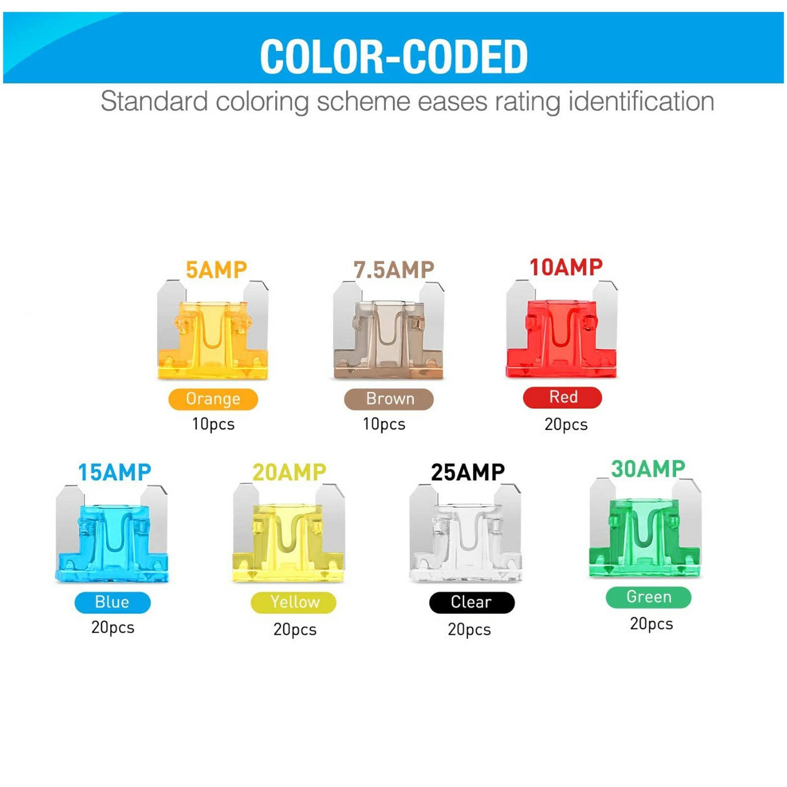 120 pc Low profile Mini Car Fuse Auto Car Motorcycle SUV FUSES Kit APM ATM