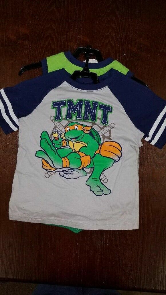 NICKELODEON BOY'S TMNT 3 PIECE TOP SHORT SET, GREEN/GREY/BLUE, 5