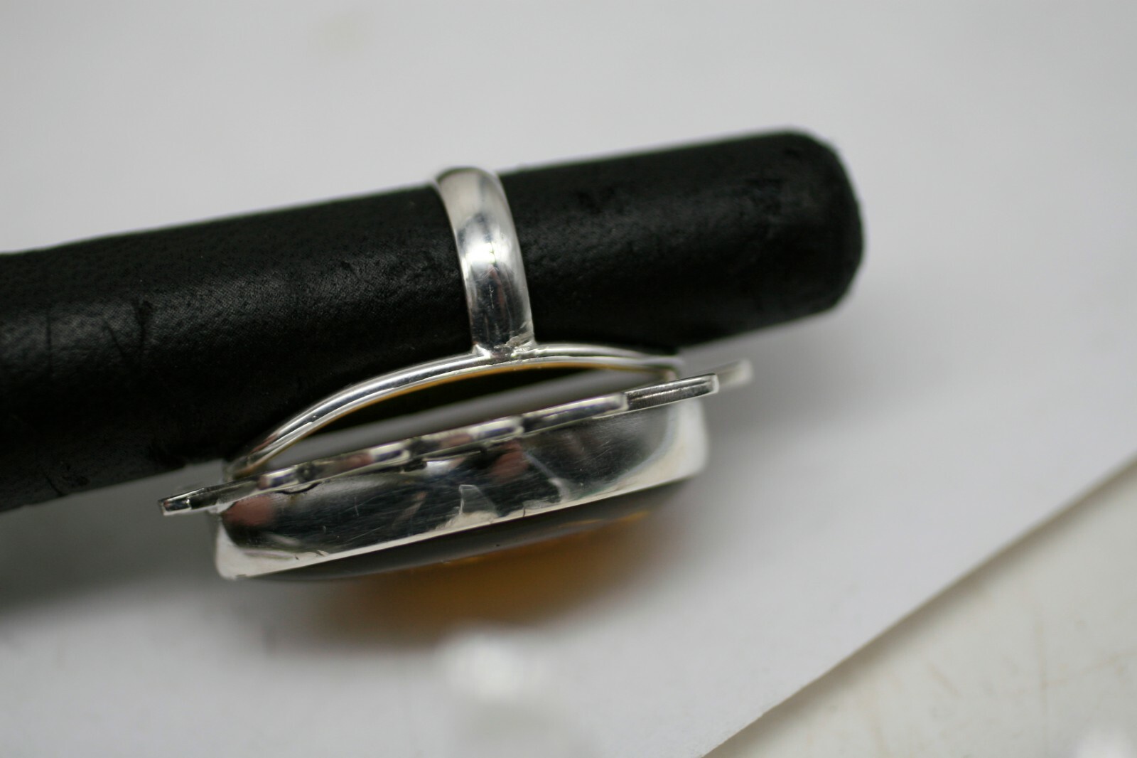 как выглядит Sterling Silver Large Amber Ring Size 6 фото
