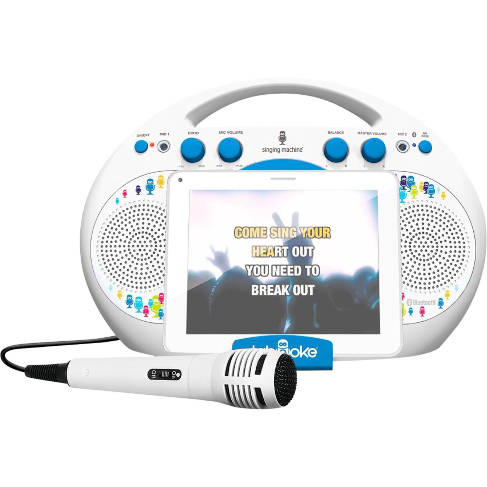 SINGING MACHINE iSM398BT TABEOKE PORTABLE BLUETOOTH KARAOKE SYSTEMS, WHITE NIOB