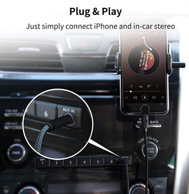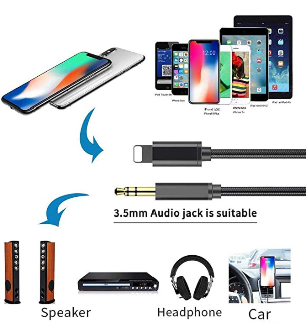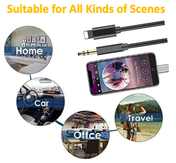 3.5mm AUX Audio Car Adapter Auxiliary Cable Nylon Braided 6.6ft Cord for iPhone