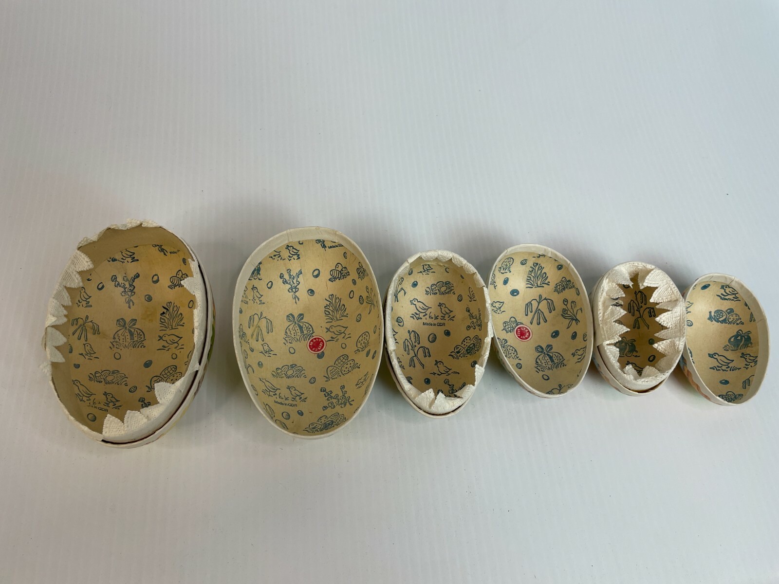 VTG set of 3 East German Paper NESTING Easter Egg Candy Container Duck Rooster