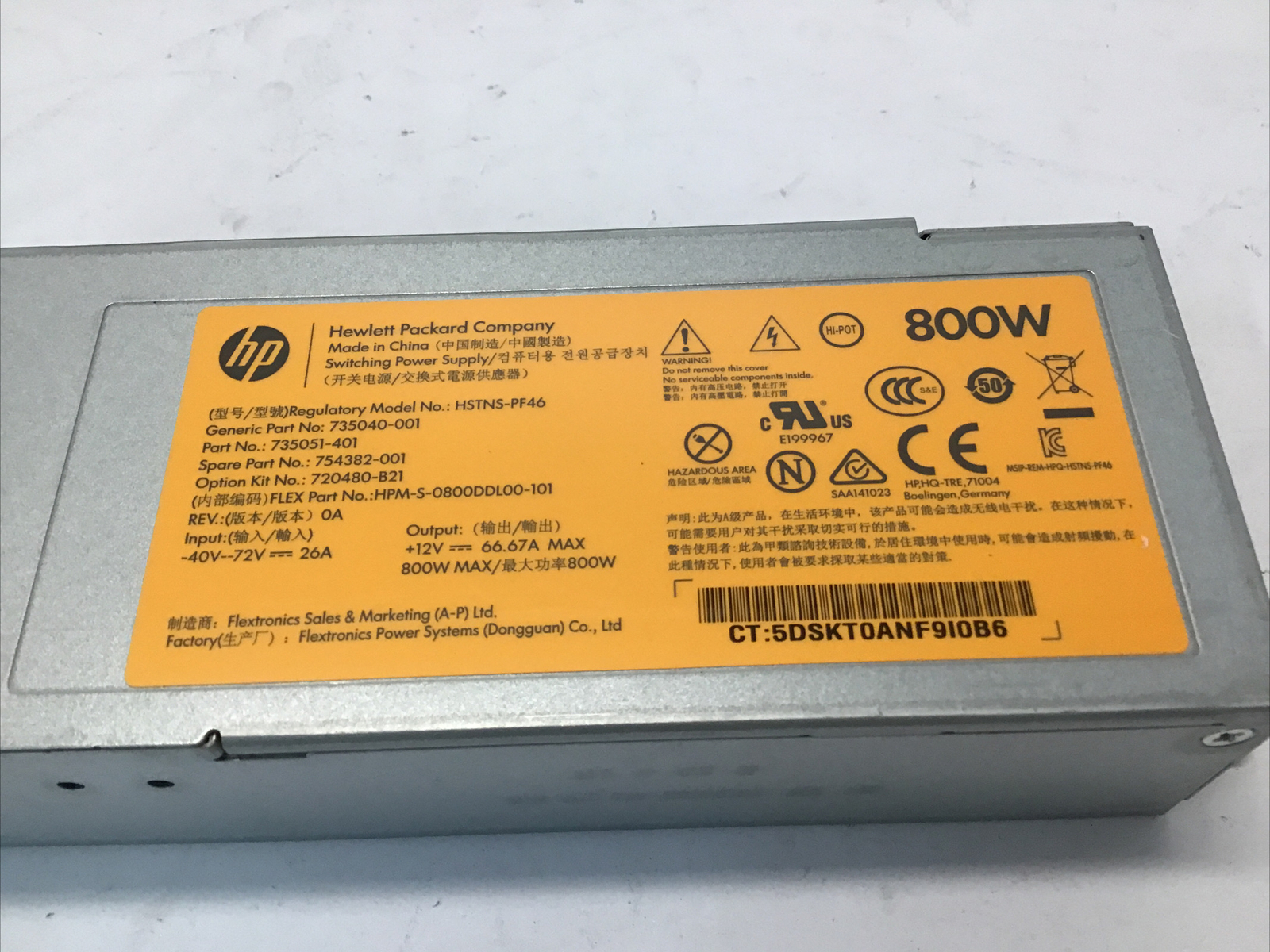 MPN: 735040-001, hstns-pf46, 735051-401, 754382-001, 720480-b21, hpm-s-0800ddl00-101
