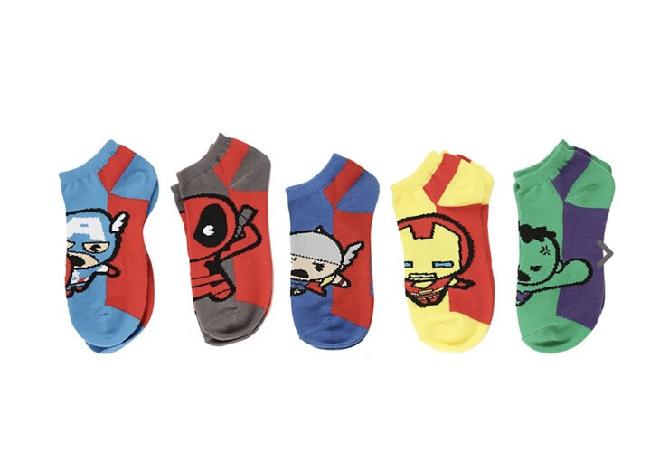 MARVEL COMICS AVENGERS CHIBI SOCK PACK FIVE PAIRS NO SHOW NEW OFFICIAL RARE