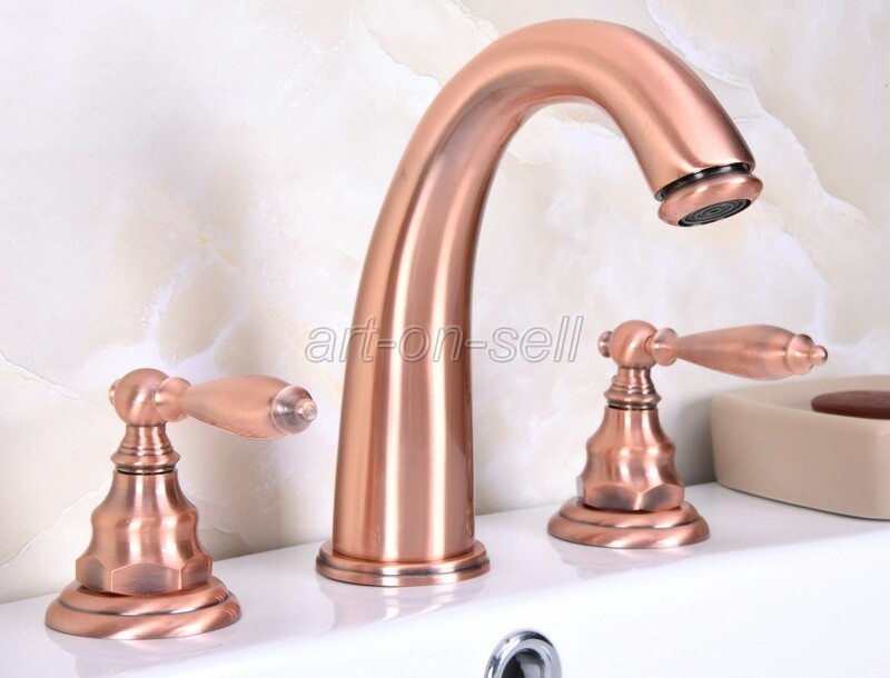 как выглядит 8 Inch Widespread Bathroom Sink Faucet 2 Handle 3 Holes Red Copper Mixer Tap фото
