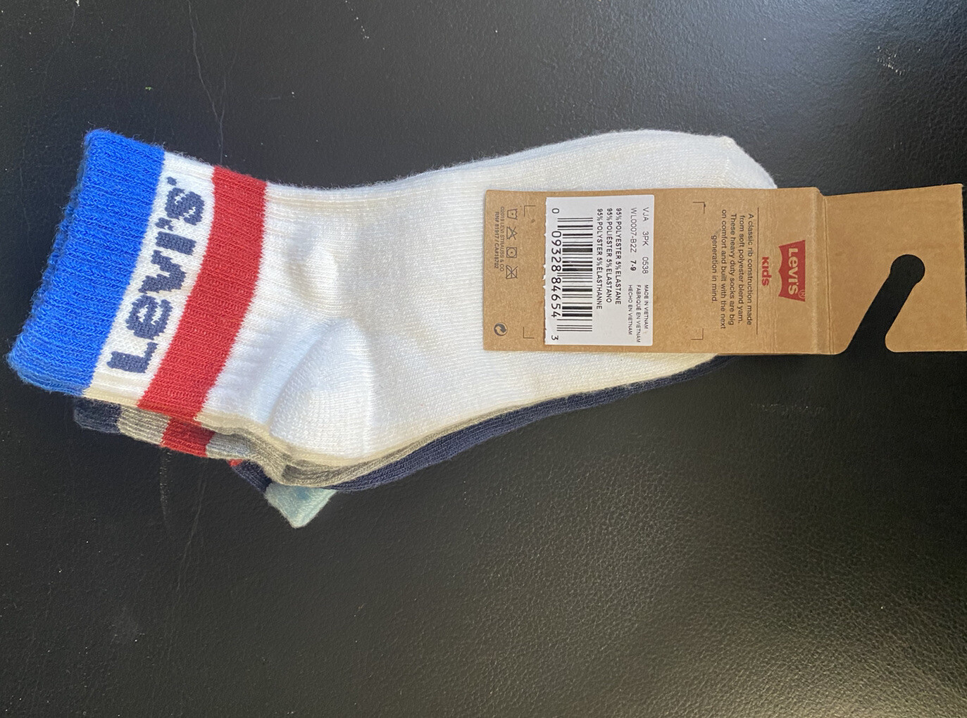 как выглядит LEVIS KIDS SOCKS 3 PAIRS LITTLE KIDS WHITE/GRAY/BLUE 3Y-5YEAR NEW WITH TAGS фото