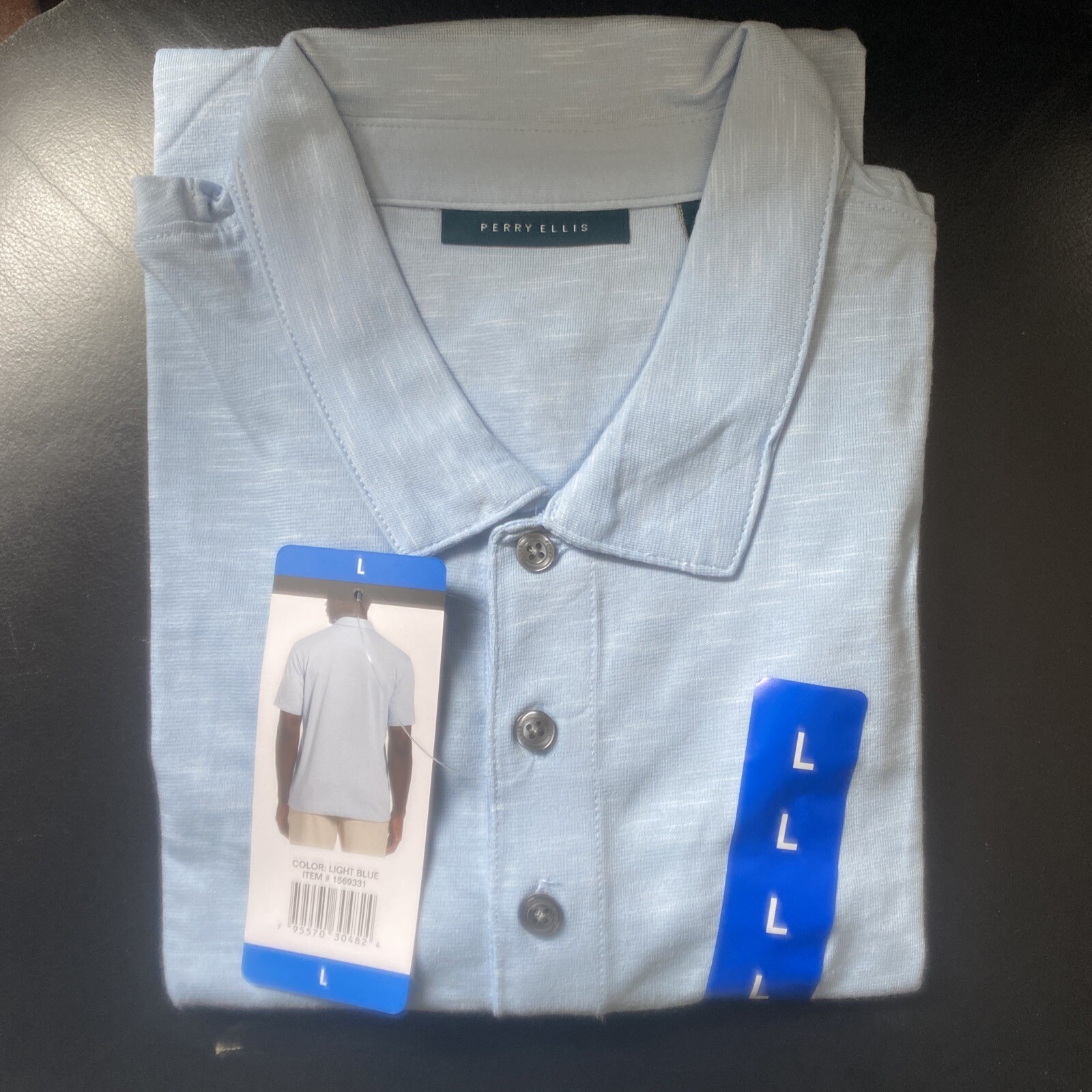 как выглядит PERRY ELLIS SLUB POLO SHORT SLEEVE COLLARED SIZE LARGE SHIRT NEW WITH TAGS фото