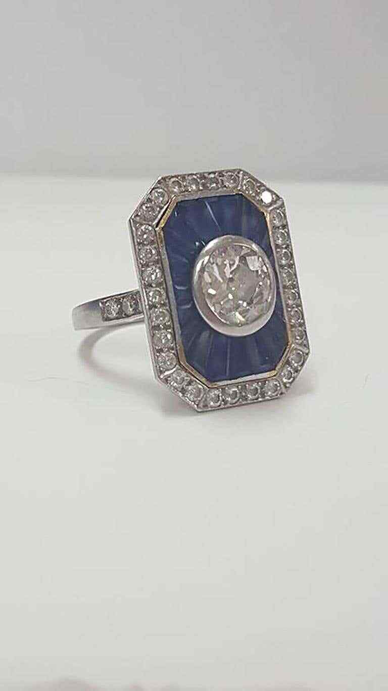 как выглядит Art Deco 6.80 CT Blue Sapphire White CZ Womens Beautiful Ring In 925 Silver фото