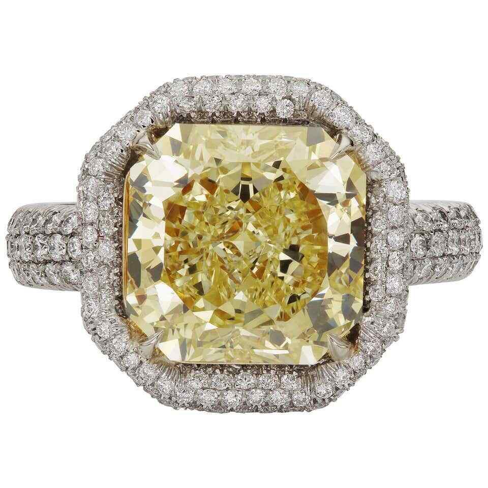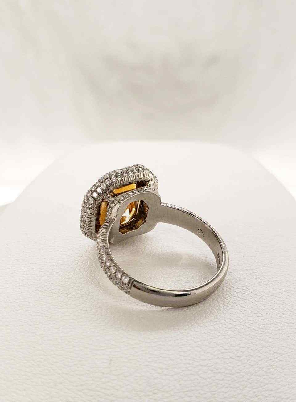 как выглядит Fancy 4.52CT Vivid Yellow Asscher Cut Citrine With Pave White CZ Engagement Ring фото