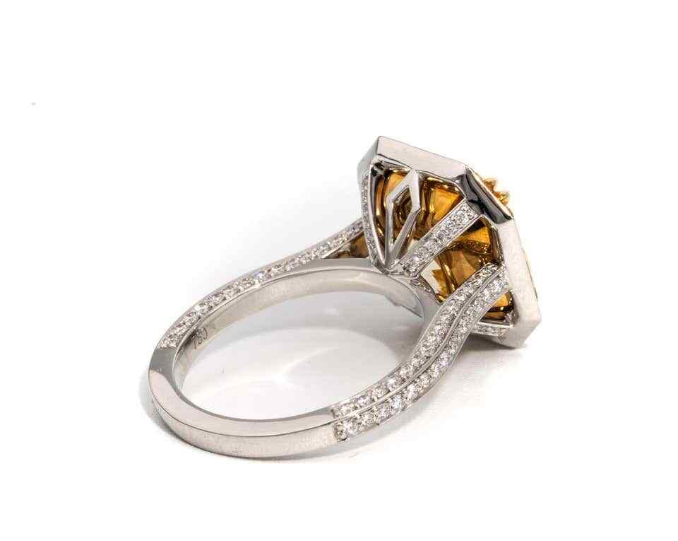 как выглядит 8.13CT Fancy Yellow Radiant Cut Citrine With 1.03CT Shiny CZ Halo Wedding Ring фото