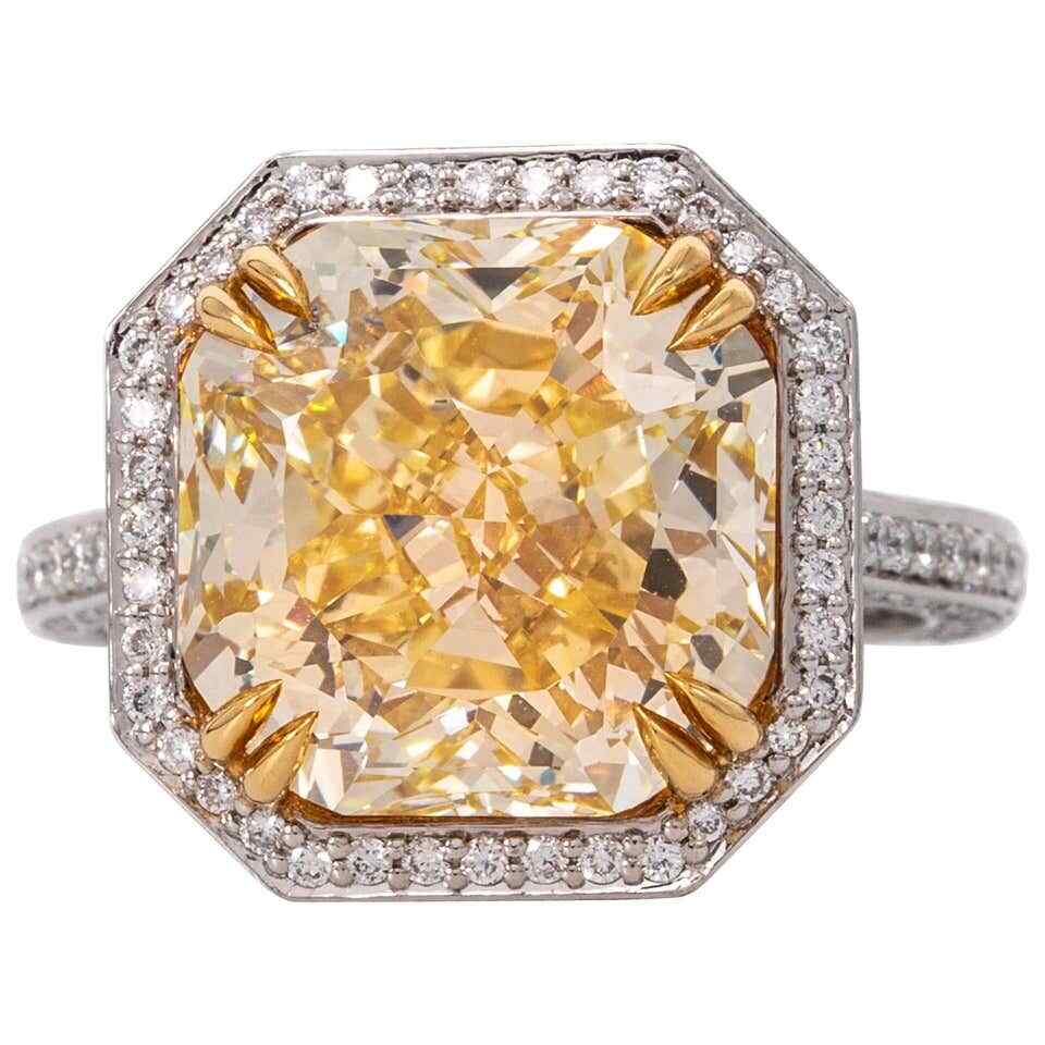 8.13CT Fancy Yellow Radiant Cut Citrine With 1.03CT Shiny CZ Halo Wedding Ring