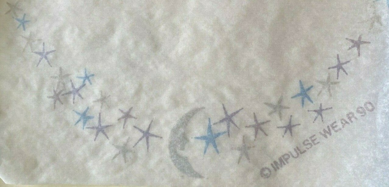 VTG 90s Moon and Stars Neckline Heat Transfer Iron On Metallic Impulse Wear