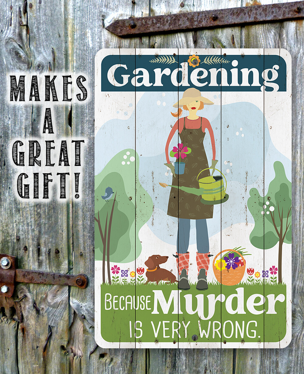 • Metal Sign - Gardening Because Murder is Very Wrong - Durable Metal Sign