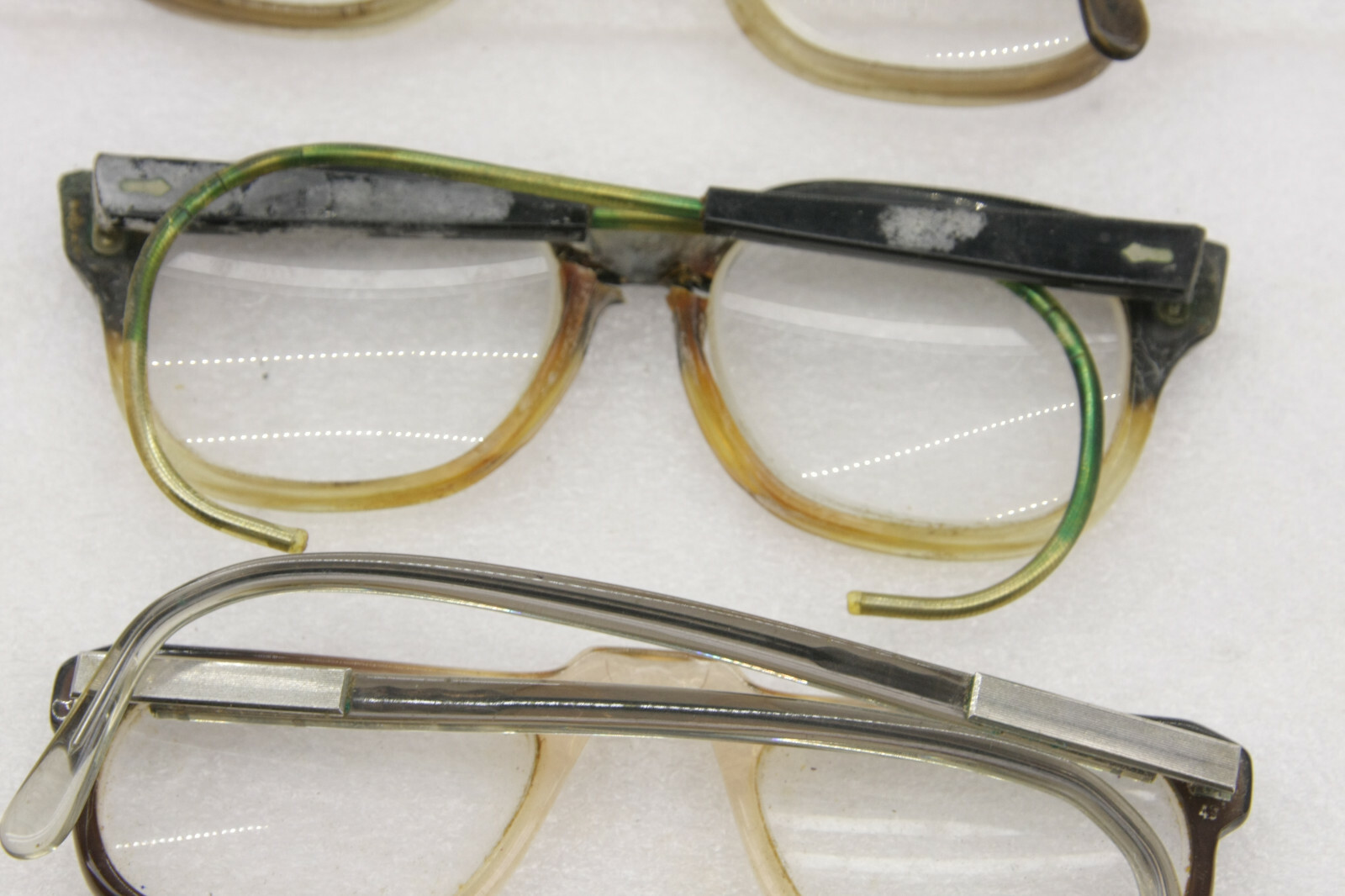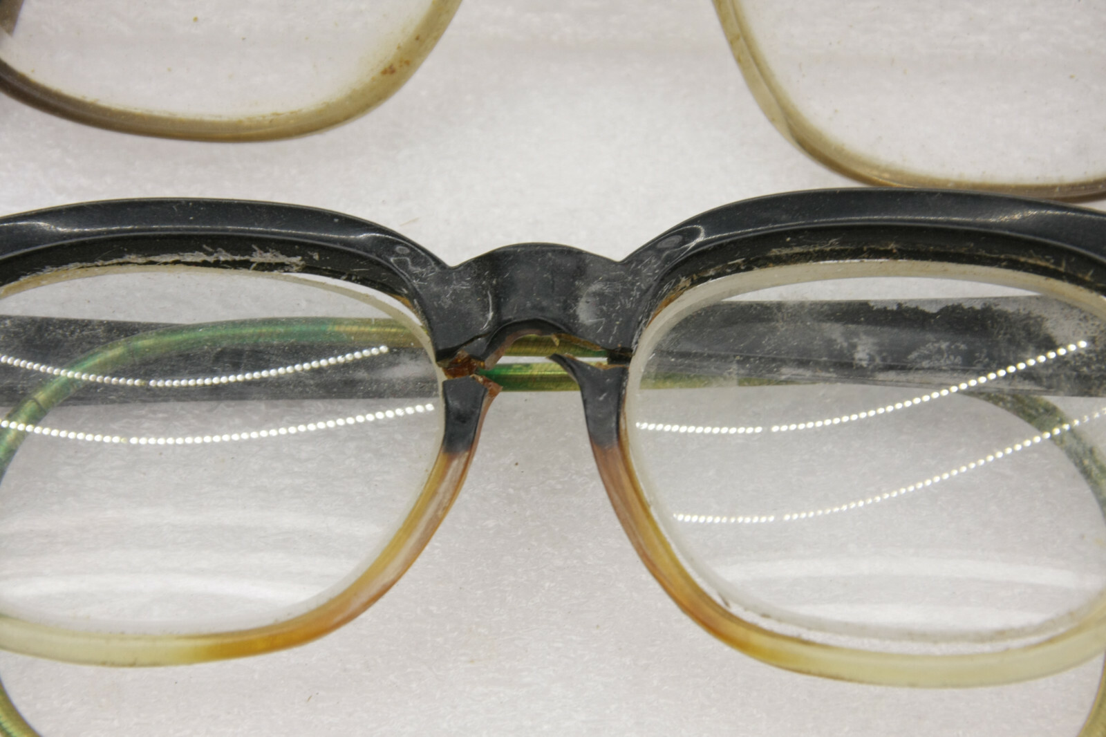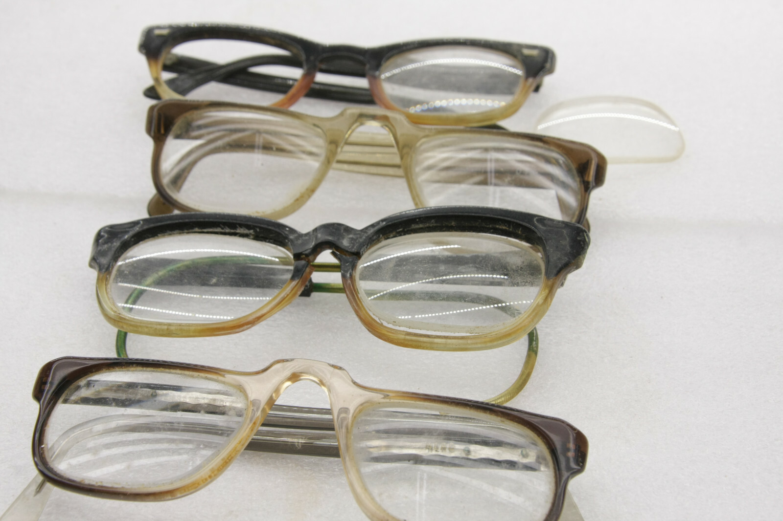 4 Eyeglasses VINTAGE - Cracked Scratchy Oxidized - Great for props or costume
