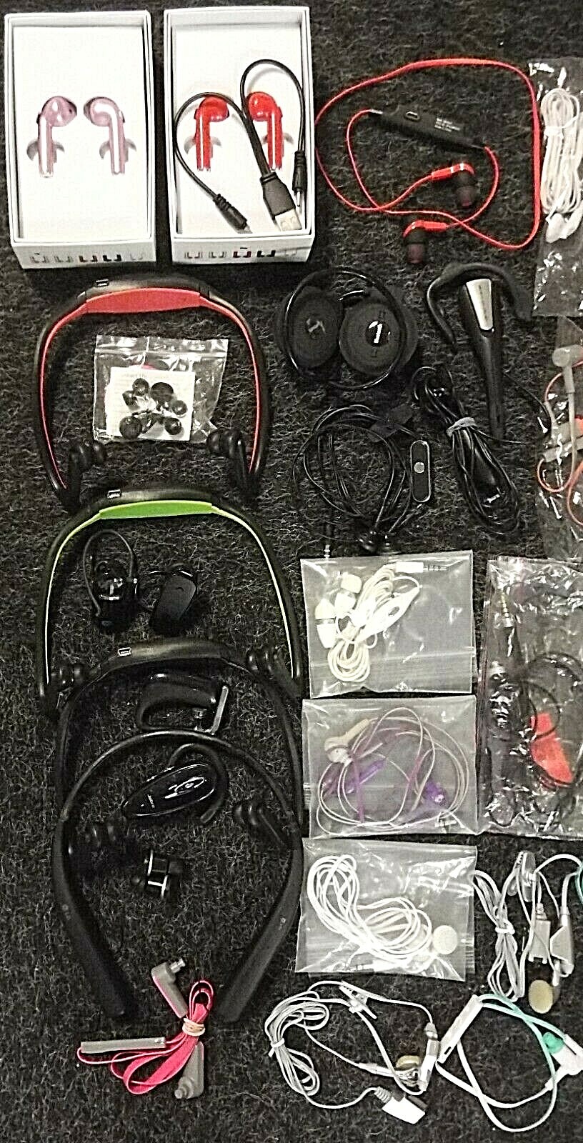 Lot of 43 Untested Wired Headphones and Bluetooth Headsets - More Details Below